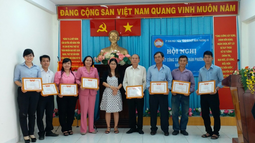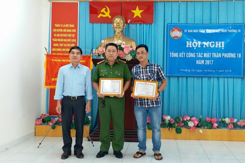 Tại Hội nghị Ủy ban Mặt trận Tổ quốc Việt Nam Phường 10 đã khen thưởng 09 tập thể và 08 cá nhân có thành tích tốt trong công tác phối hợp thực hiện nhiệm vụ của Mặt trận năm 2017./.