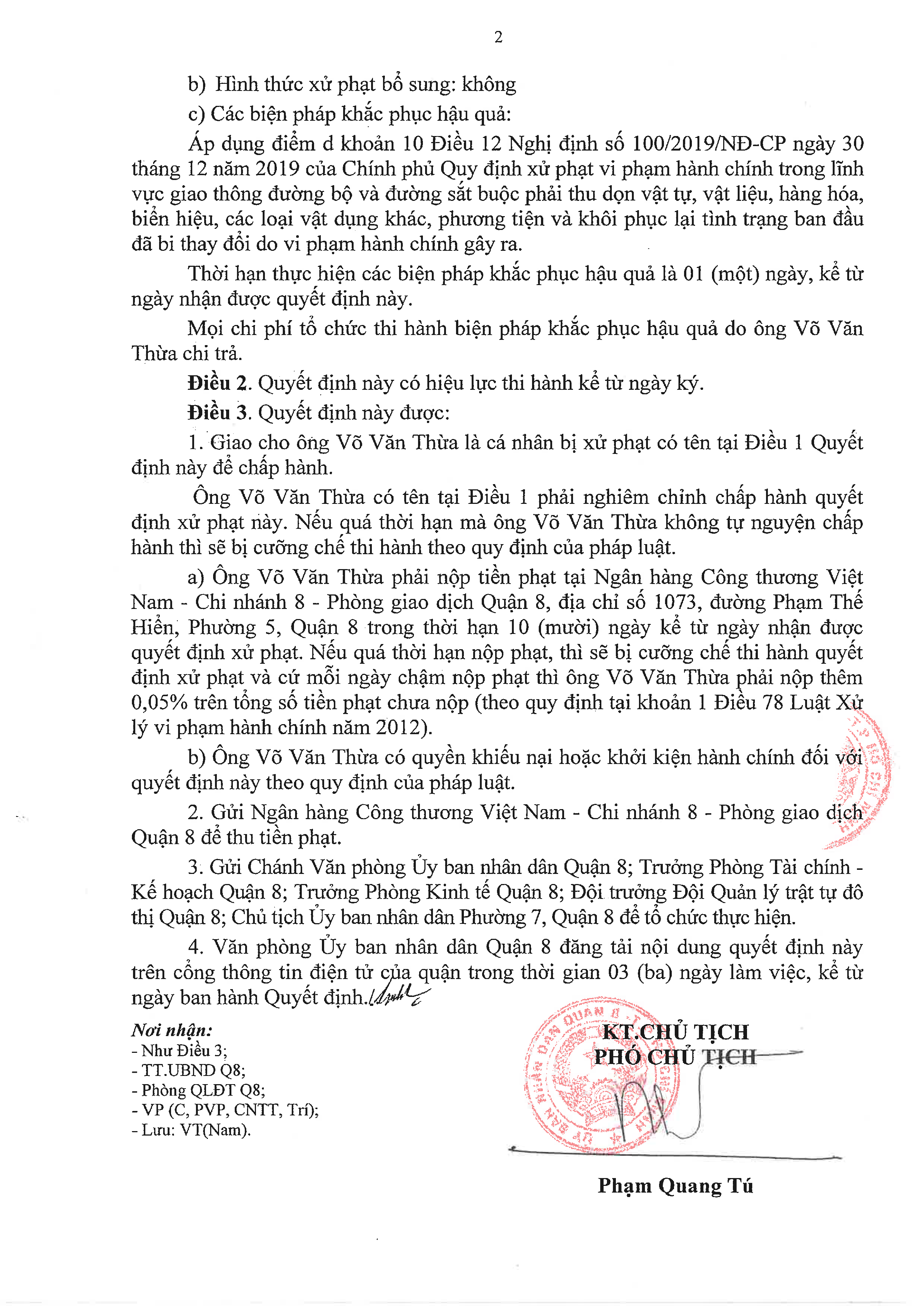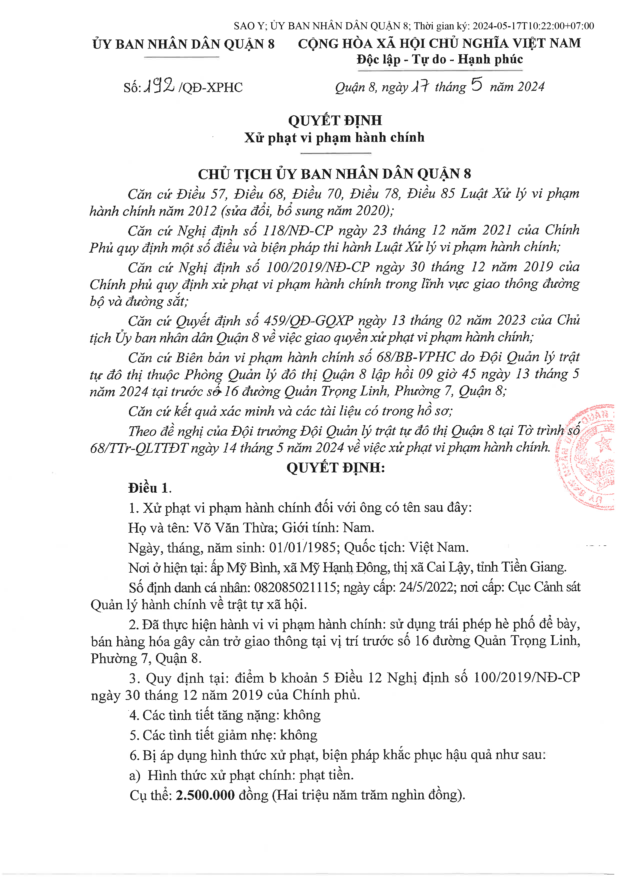 xử phạt vi phạm hành chính ông Võ Văn Thừa - QĐ số 192/QĐ-XPHC