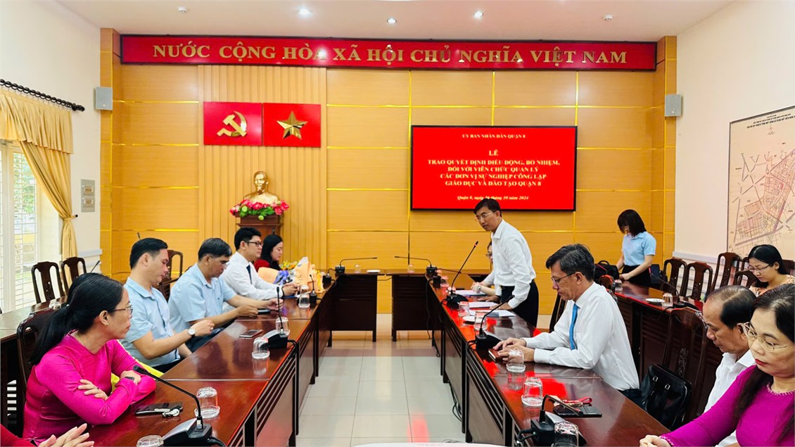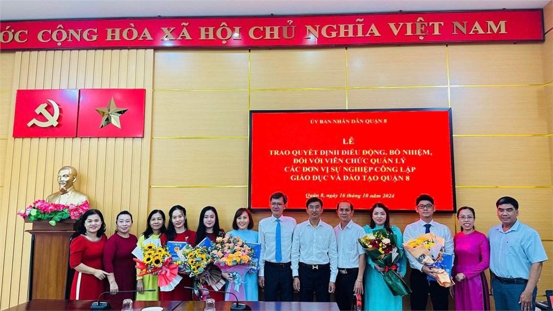 Sáng ngày 16 tháng 10 năm 2024, Lễ trao Quyết định điều động, bổ nhiệm viên chức quản lý khối Giáo dục và Đào tạo tại trụ sở Ủy ban nhân dân Quận 8