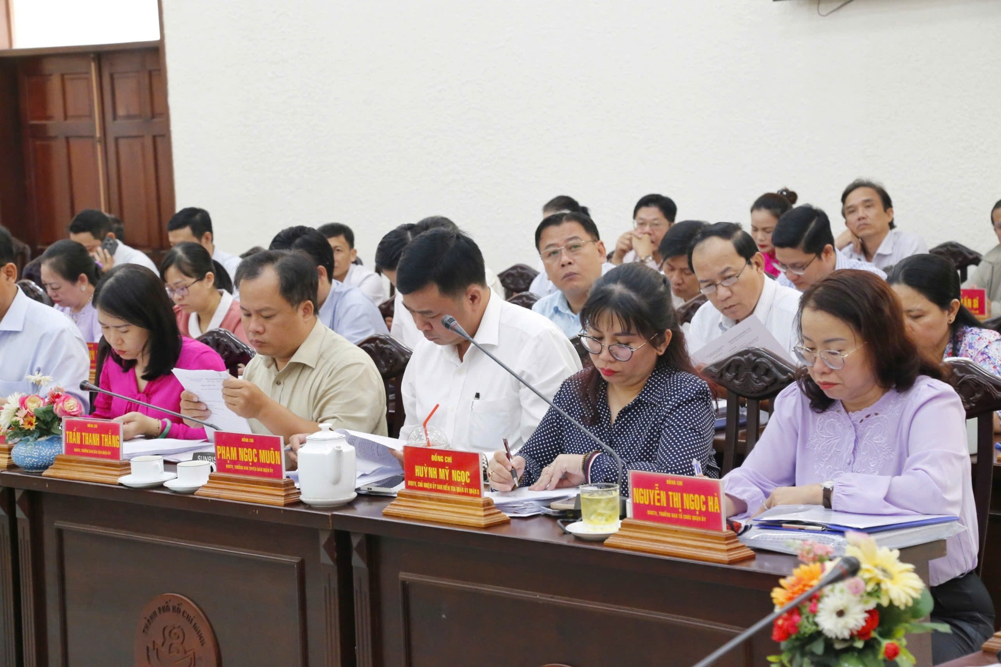 Theo báo cáo, năm 2024, toàn hệ thống chính trị quận đã quán triệt, triển khai kịp thời, nghiêm túc, có hiệu quả các nghị quyết của Đảng, chính sách, pháp luật của Nhà nước và Nghị quyết số 18-NQ/QU ngày 18 tháng 12 năm 2023 của Ban Chấp hành Đảng bộ quận về nhiệm vụ và giải pháp thực hiện công tác xây dựng Đảng, xây dựng chính quyền, công tác dân vận năm 2024 với tinh thần chủ động, tích cực, quyết tâm cao. Quận đã lãnh đạo thực hiện có hiệu quả chủ trương sắp xếp khu phố theo quy định của Trung ương với 202 khu phố được kiện toàn. Kinh tế quận tiếp tục duy trì mức tăng trưởng hợp lý, nhiều chỉ tiêu tăng so với cùng kỳ, ước tổng thu ngân sách đạt 120,09%. Nhiều dự án, công trình trọng điểm đã được triển khai và đẩy nhanh tiến độ, hoàn thành, đưa vào sử dụng, góp phần làm cho diện mạo giao thông và đô thị quận không ngừng đổi mới; đến nay tỷ lệ giải ngân đầu tư công của quận đạt 55,49%, dự kiến đến hết năm 2024 sẽ đạt 96%. Các lĩnh vực văn hóa, xã hội, y tế, giáo dục, môi trường tiếp tục được quan tâm thực hiện; công tác giảm nghèo bền vững, bảo đảm an sinh xã hội, giải quyết việc làm có nhiều chuyển biến tích cực, góp phần cải thiện đời sống vật chất, tinh thần của Nhân dân. Công tác chuẩn bị đại hội đảng các cấp tiến tới Đại hội XIII Đảng bộ quận gắn với xây dựng, chỉnh đốn Đảng và củng cố, kiện toàn tổ chức, bộ máy, cán bộ các cấp và công tác chuẩn bị sắp xếp các đơn vị hành chính cấp phường trên địa bàn, giai đoạn 2023 - 2030 được triển khai đồng bộ. Các hoạt động chuẩn bị tổ chức các ngày lễ lớn và Kỷ niệm 50 năm Ngày giải phóng miền Nam, thống nhất đất nước (30/4/1975 - 30/4/2025) được tập trung chỉ đạo thực hiện hiệu quả. Tình hình an ninh chính trị, trật tự an toàn xã hội tiếp tục được giữ vững, công tác quốc phòng được tăng cường.