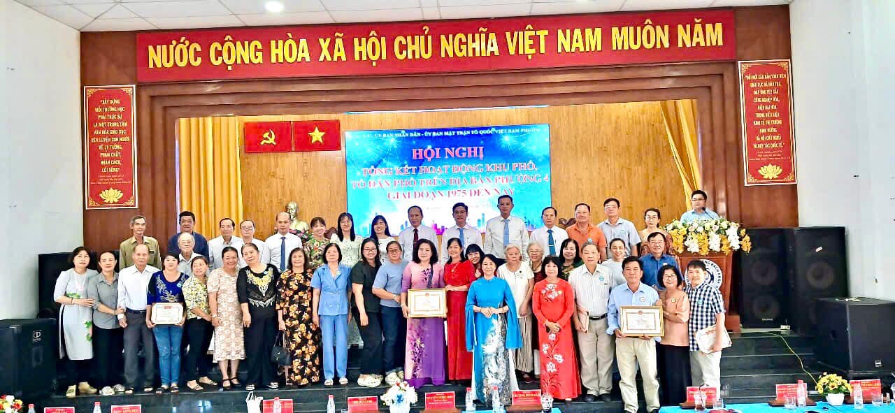 Ngày 29/12, Ủy ban nhân dân Phường 4 đã long trọng tổ chức Hội nghị tổng kết hoạt động khu phố, tổ dân phố giai đoạn 1975 đến nay trên địa bàn Phường 4 nhằm tôn vinh công lao, đóng góp của các cá nhân trong thời gian tham gia hoạt động tại khu phố, tổ dân phố gắn với hoạt động chào mừng kỷ niệm 50 năm ngày Giải phóng miền Nam, thống nhất đất nước (30/4/1975 - 30/4/2025).