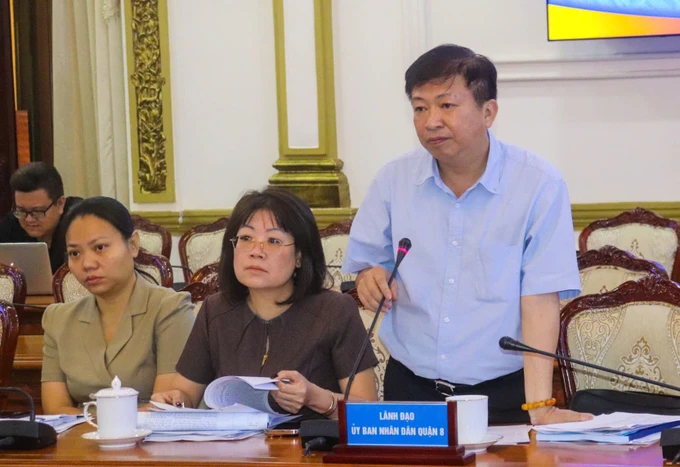 Chủ tịch UBND quận 3 Võ Văn Đức thông tin tại buổi làm việc