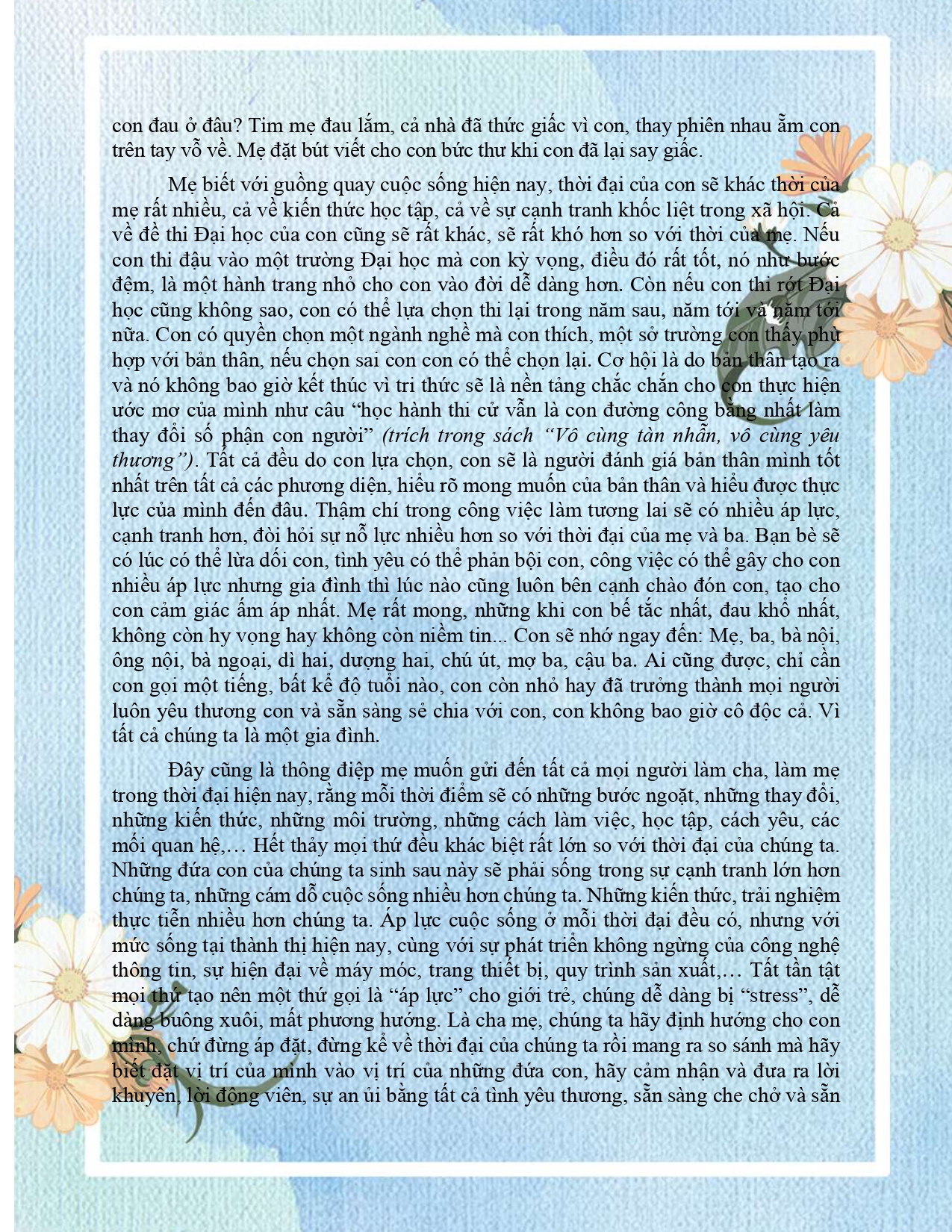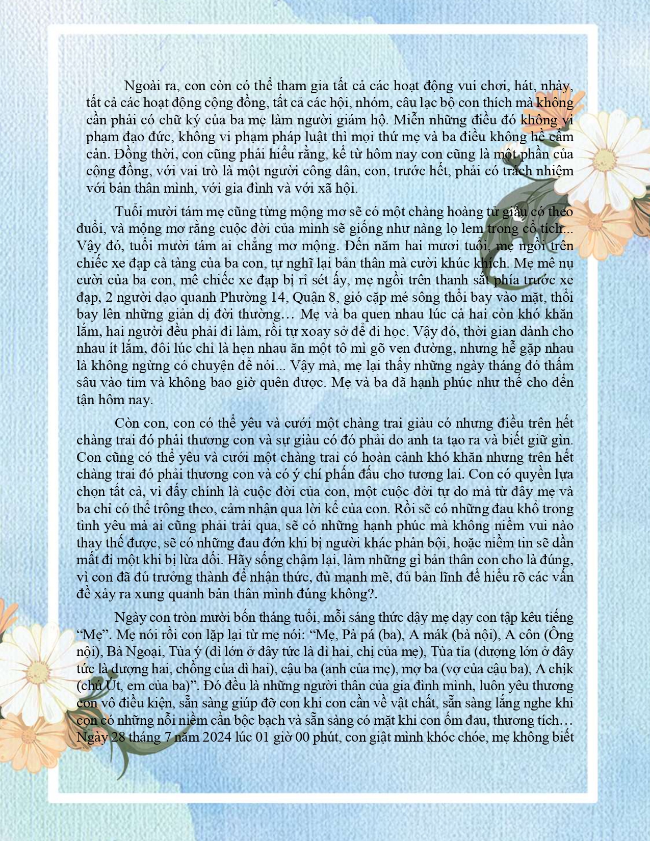 THƯ GỬI CON GÁI KHI CON 18 TUỔI