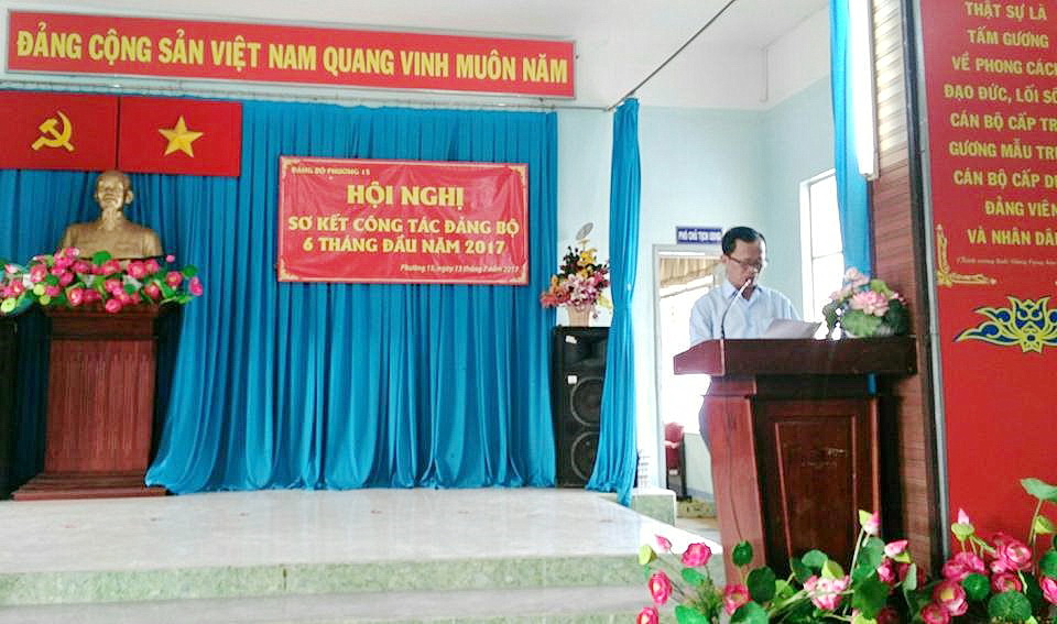 Sáng ngày 13/7/2017, Đảng ủy phường 15 đã tổ chức hội nghị sơ kết công tác Đảng bộ 6 tháng đầu năm và triển khai nhiệm vụ quý III năm 2017. Tham dự hội nghị, có đồng chí Phạm Văn Tùng – Bí thư Đảng ủy, Chủ tịch Hội đồng nhân dân, đồng chí Huỳnh Kim Châu – Phó Bí thư Thường trực Đảng ủy và các đồng chí đảng viên thuộc đảng bộ phường, cùng với sự tham dự của đồng chí Huỳnh Thanh Tú – Chuyên viên Ban Tổ chức Quận ủy.