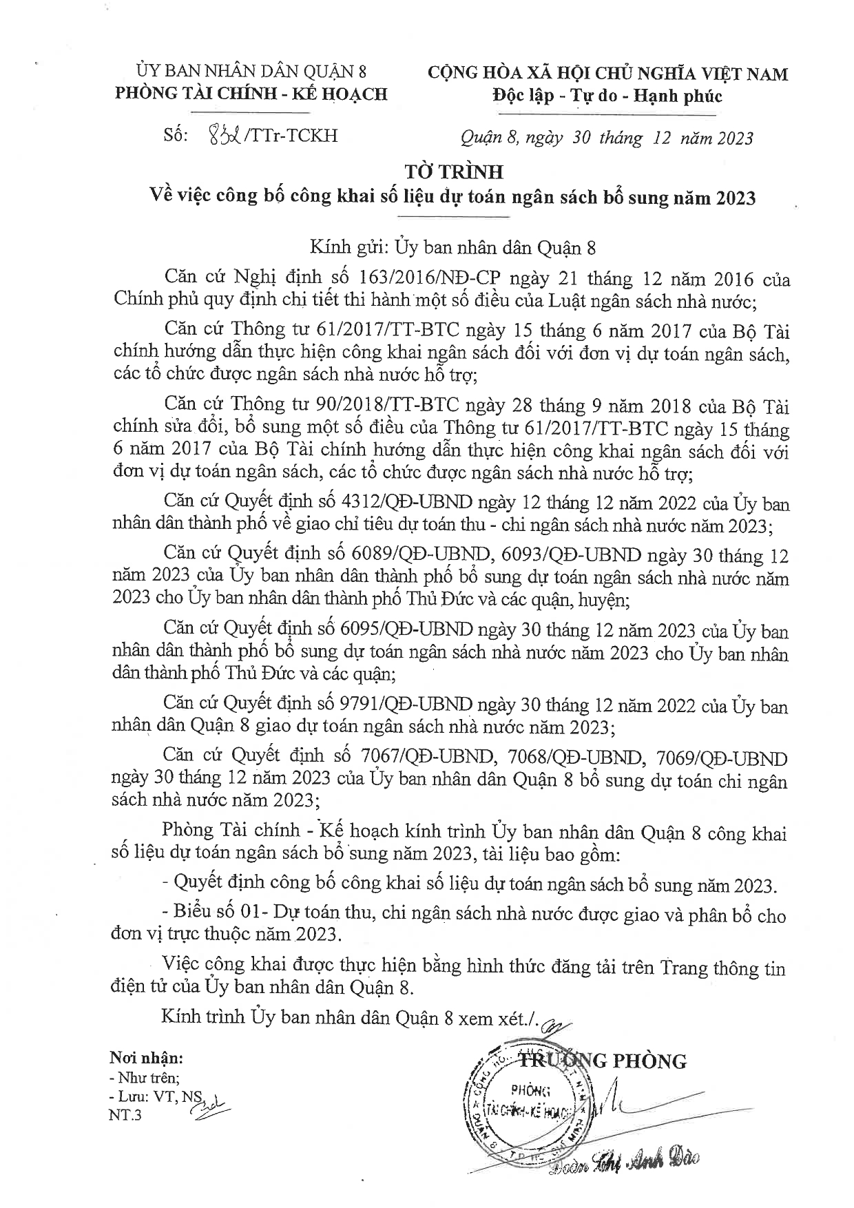 Quyết định về việc công bố công khai số liệu dự toán ngân sách bổ sung năm 2023