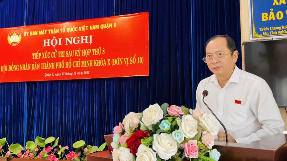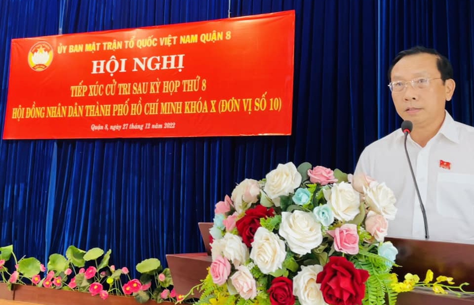 Chiều 27/12, Tổ Đại biểu HĐND Thành phố (đơn vị số 10) gồm: Thành ủy viên, Giám đốc Sở Y tế TPHCM Tăng Chí Thượng; Bí thư Đảng ủy Khối doanh nghiệp TPHCM Ngô Thành Tuấn đã có buổi tiếp xúc với cử tri Quận 8 sau kỳ họp thứ 8.