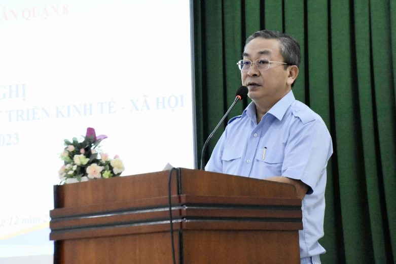Kết luận hội nghị, Chủ tịch UBND Quận 8 Trần Thanh Tùng nhấn mạnh một số nội trọng tâm cần thực hiện trong năm 2023 như: Chủ động, sáng tạo, thích ứng linh hoạt, đảm bảo hiệu lực, hiệu quả trong chỉ đạo, điều hành và thực hiện hiệu quả chủ đề năm 2023 của Thành phố; Tăng cường huy động, phân bổ, sử dụng hiệu quả các nguồn lực cho đầu tư phát triển, quyết tâm hoàn thành kế hoạch đầu tư công, đẩy nhanh triển khai các dự án trọng điểm; Tập trung thực hiện các giải pháp, kế hoạch chuyên đề để thúc đẩy phát triển kinh tế, đặc biệt là các lĩnh vực, ngành nghề dịch vụ, thương mại có ưu thế; Tập trung công tác quy hoạch, phát triển hạ tầng giao thông, tăng cường quản lý nhà nước về xây dựng, trật tự đô thị; Đảm bảo quốc phòng - an ninh và trật tự an toàn xã hội trên địa bàn quận; Tiếp tục thực hiện công tác chăm lo an sinh xã hội nhất là trong dịp Tết Quý Mão năm 2023...
