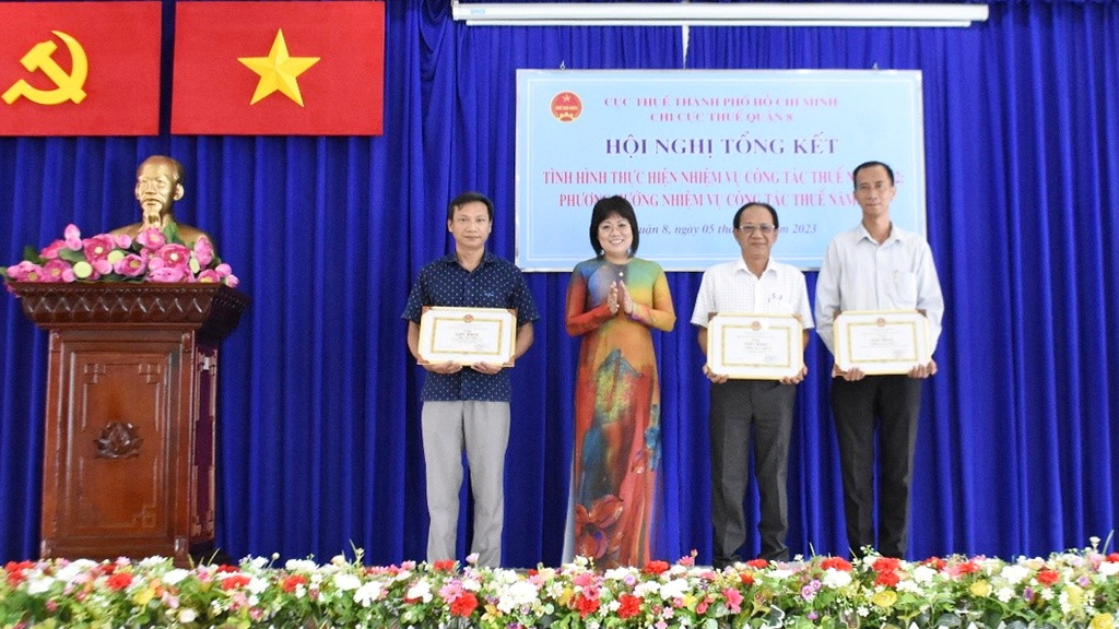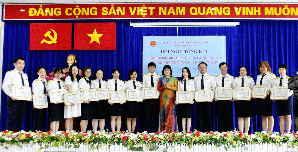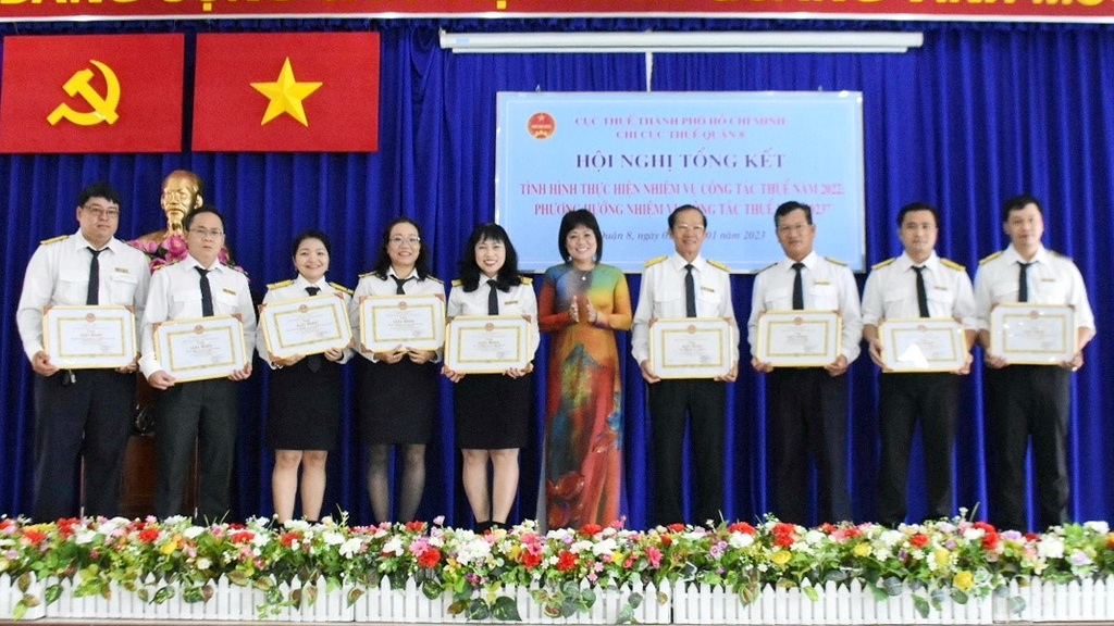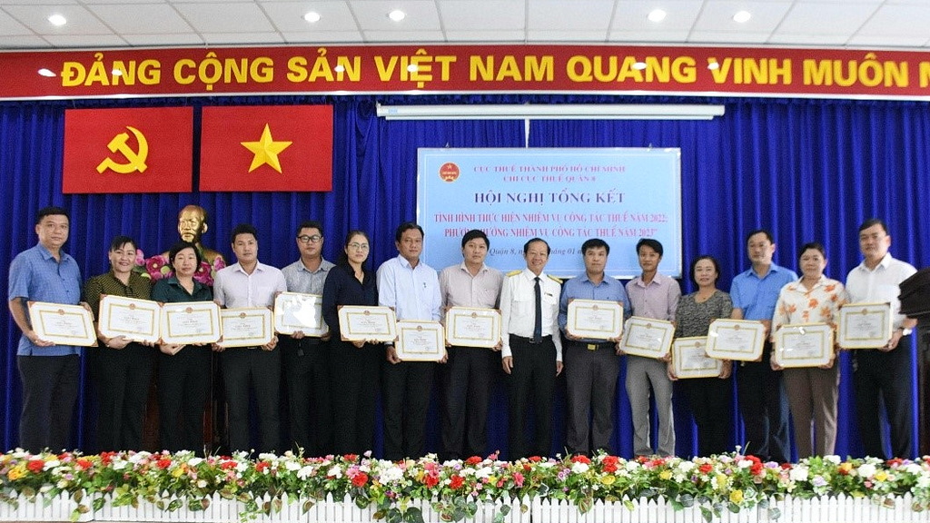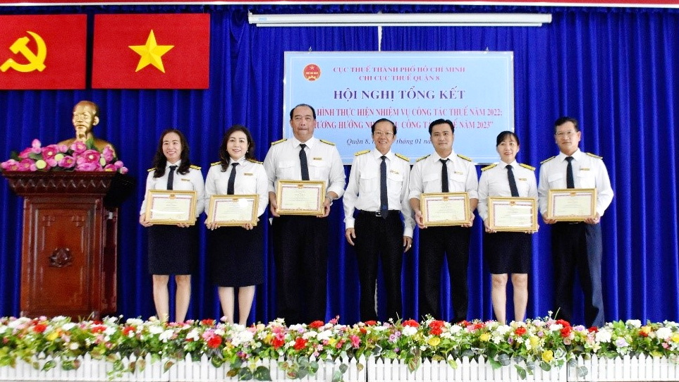 Tại hội nghị, UBND Quận 8 đã khen thưởng cho 22 tập thể và 41 cá nhân có thành tích xuất sắc trong công tác phối hợp quản lý và thu thuế năm 2022. Ngoài ra, dịp này, có 07 cá nhân cũng đã vinh dự nhận được bằng khen của Bộ Tài chính.