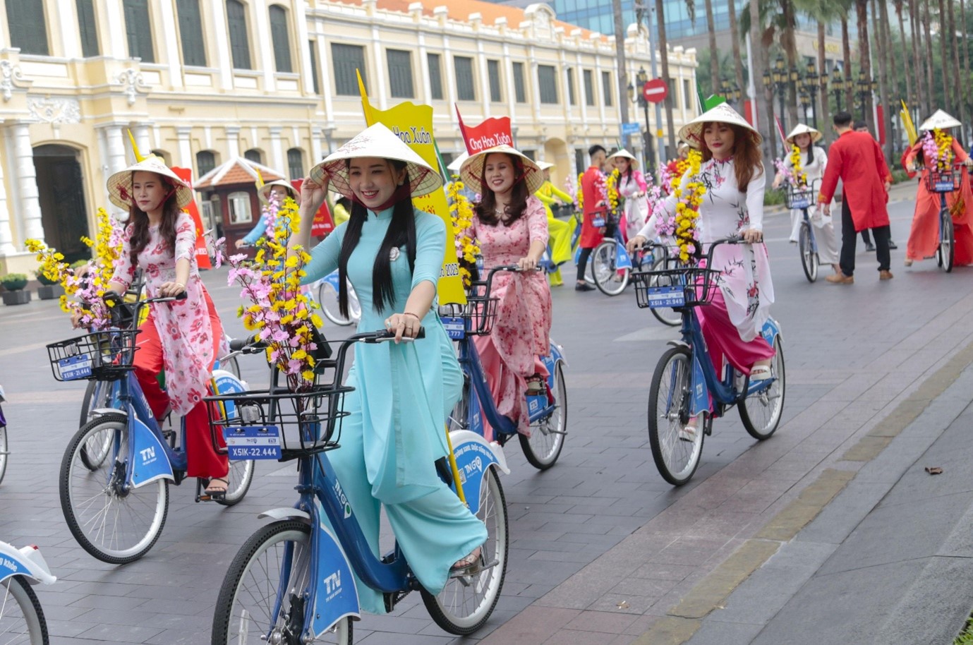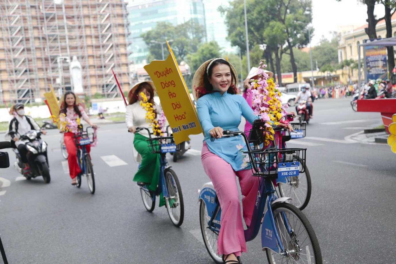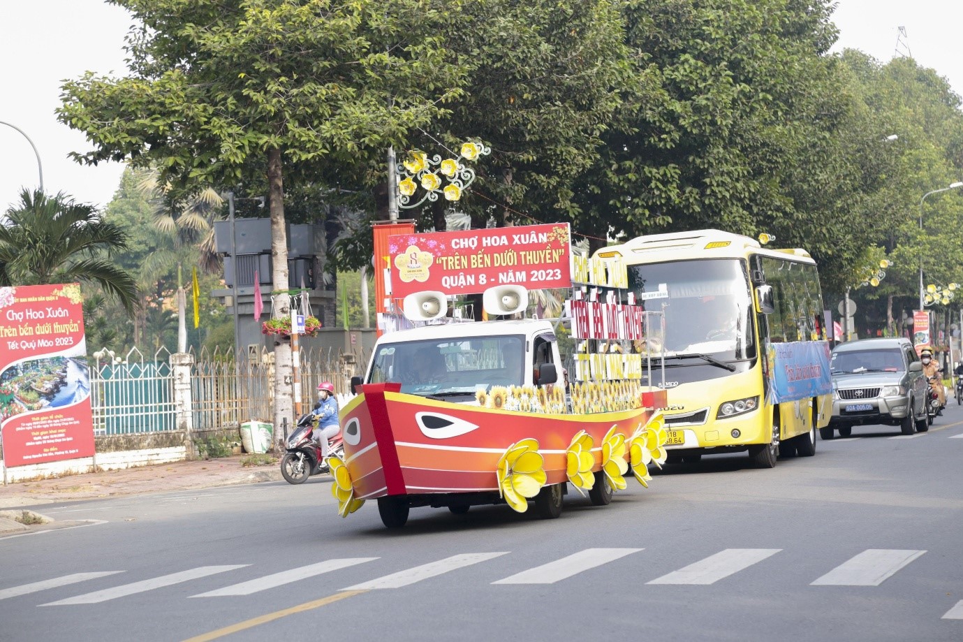 Sau lễ dâng hoa, các thành viên trong đoàn thực hiện diễu hành xe đạp hoa theo lộ trình: phố đi bộ Nguyễn Huệ - đường Lê Thánh Tôn - đường Pasteur - đường Alexander de Rhodes - đường Phạm Ngọc Thạch - đường Đồng Khởi - đường Tôn Đức Thắng - đường Nguyễn Huệ. Đây là hoạt động nhằm quảng bá, tuyên truyền các hoạt động Chợ Hoa Xuân "Trên bến dưới thuyền" Quận 8 năm 2023 đến gần với mọi người, chương trình được khai mạc vào lúc 19h00 ngày 16/01/2023.
