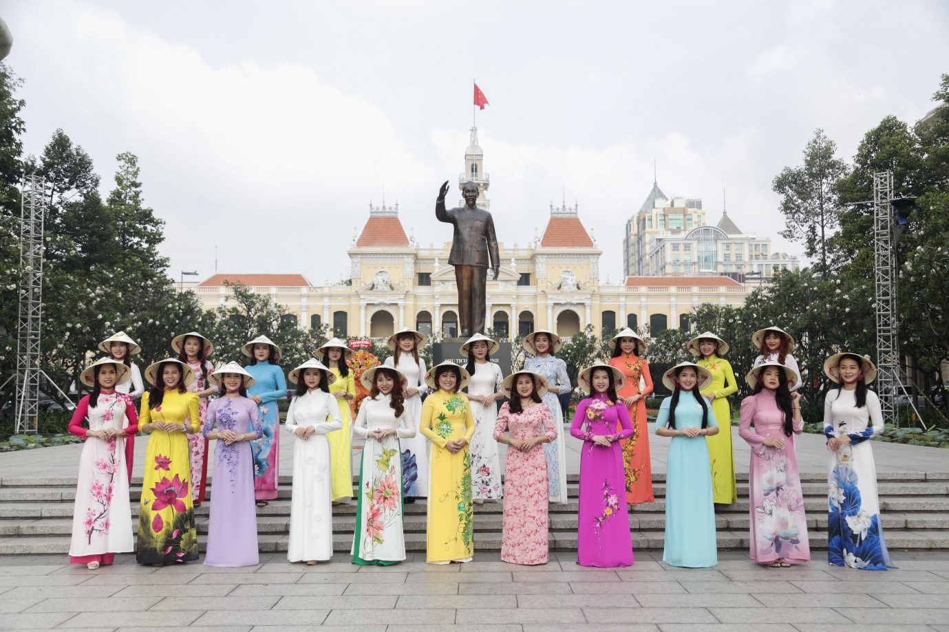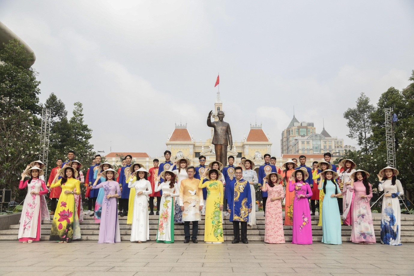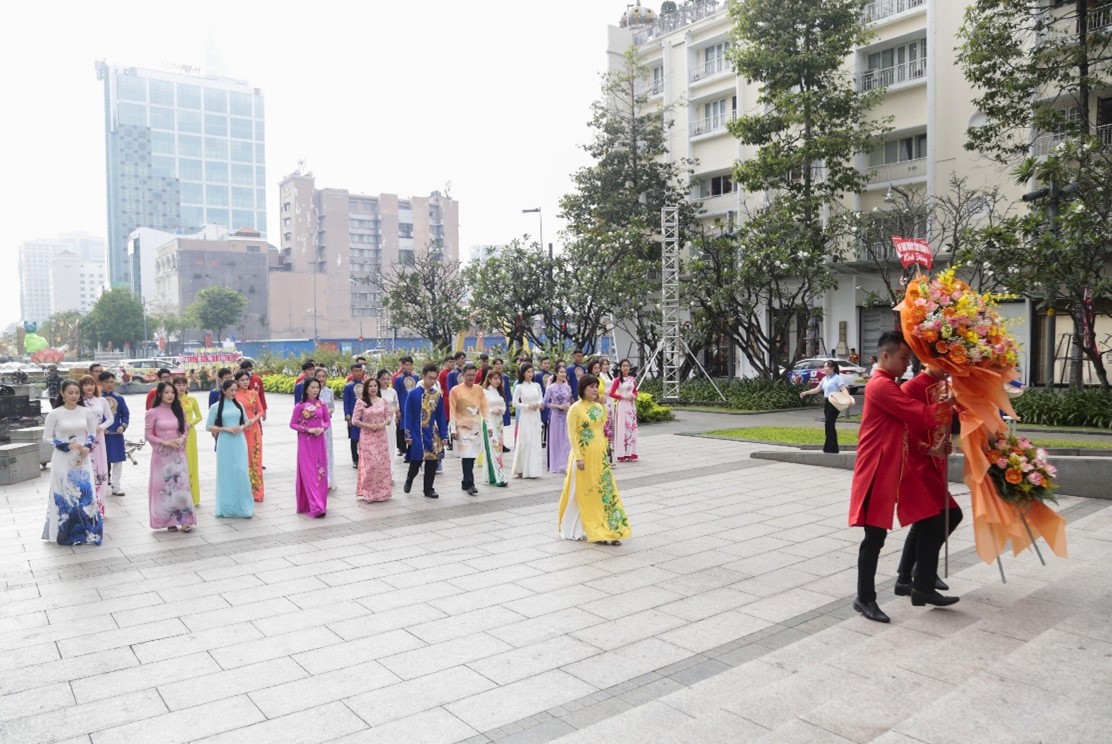 Đoàn dâng hoa do đồng Nguyễn Thị Thu Hoa - Ủy viên Ban Thường vụ Quận ủy, Phó Chủ tịch Ủy ban Nhân dân Quận 8 làm trưởng đoàn; đi cùng có đồng chí Dương Văn Dân - Quận ủy viên, Trưởng phòng Giáo dục và Đào tạo; đồng chí Nguyễn Minh Trọng - Phó Trưởng phòng Văn hóa và thông tin; đồng chí Hoàng Ngọc Loan - Phó Chủ tịch Hội Liên hiệp Phụ nữ; đồng chí Chu Quốc Anh - Phó Chánh văn phòng Ủy ban Nhân dân và Top 20 thí sinh của Hội thi "Duyên dáng Áo dài hoa" Quận 8.