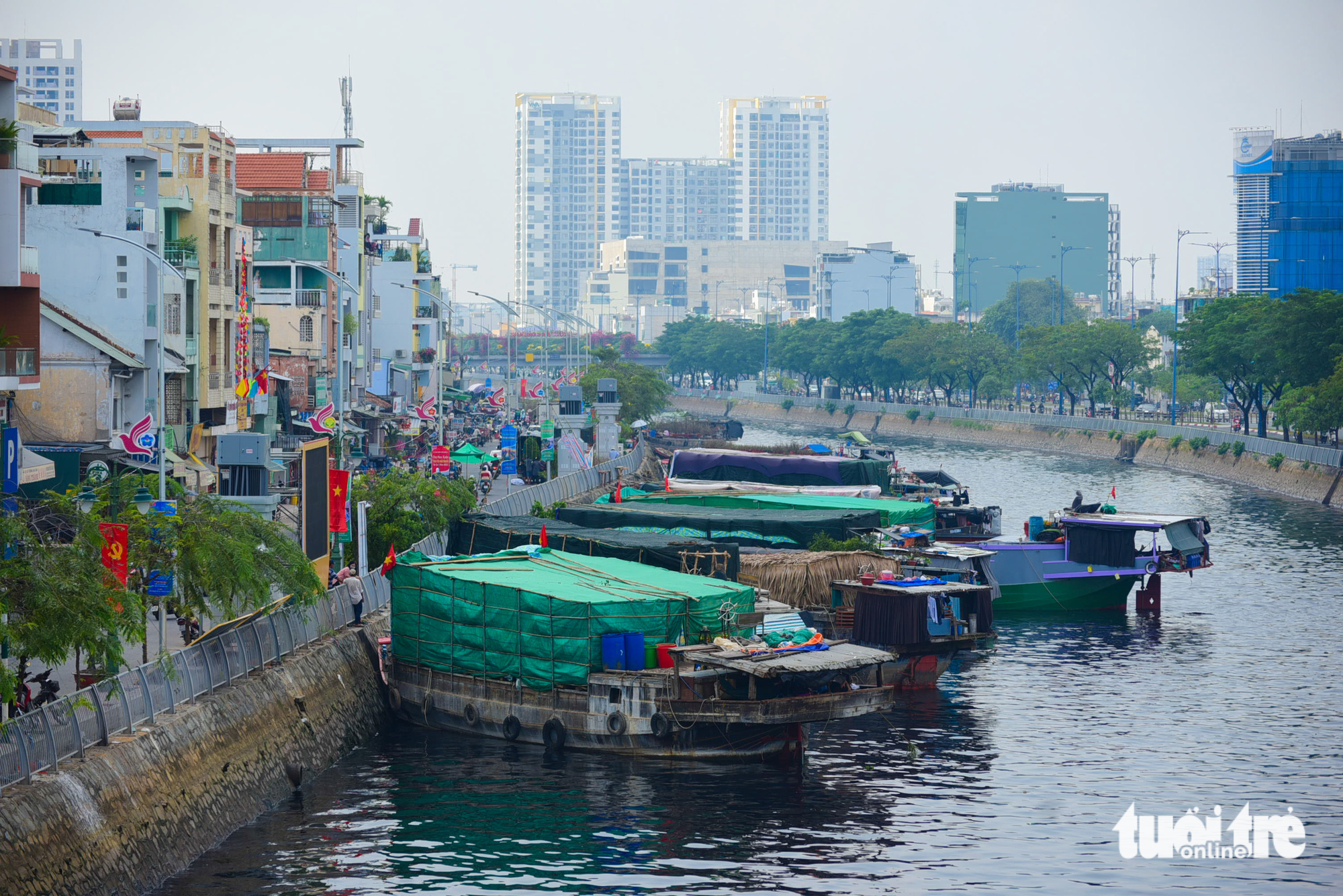 Đa số các thương lái cập ghe hoa bên bờ kênh Tàu Hủ từ ngày 21 âm lịch - Ảnh: NGỌC PHƯỢNG