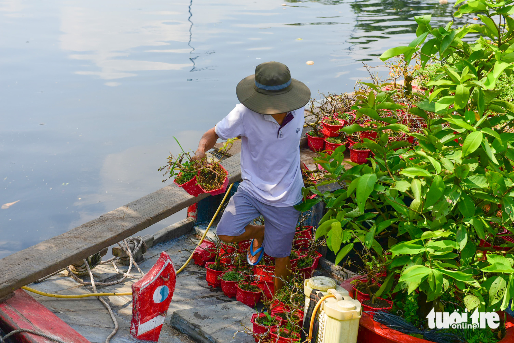 Chú Nguyễn Thái Bửu (nhà vườn Bến Tre) cho biết chú mang 1.000 chậu các loại mai vàng, mai chiếu thủy, ớt, chủ yếu là loại trong chậu nhỏ. Chú còn chở nước ngọt từ dưới quê lên để tưới cho cây và sinh hoạt ngay trên ghe.