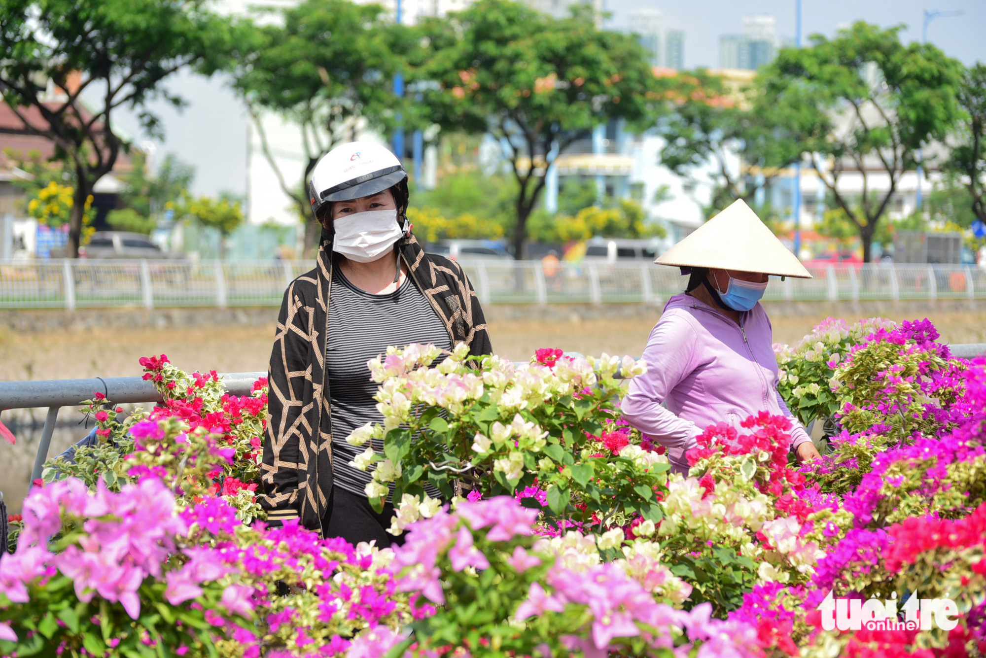 Rộp sắc màu của hoa trên Bến Bình Đông chiều ngày 14-1 - Ảnh: NGỌC PHƯỢNG