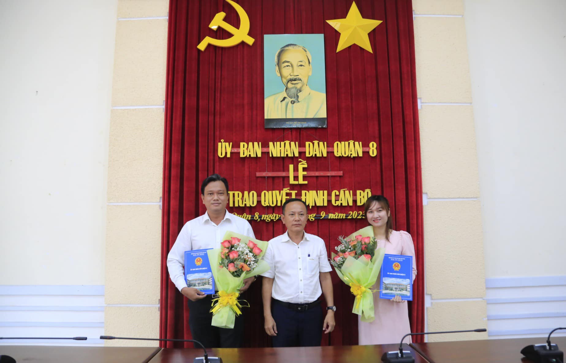 Sáng cùng ngày, Phó Chủ tịch Thường trực UBND Quận 8 Nguyễn Thanh Sang đã trao các quyết định tiếp nhận, bổ nhiệm đồng chí Nguyễn Thị Yến Linh, chuyên viên Ban tổ chức Quận ủy Quận 8 giữ chức vụ Phó Chánh Văn phòng UBND quận, kể từ ngày 12/9/2023; điều động, bổ nhiệm đồng chí Trương Thế Kiệt, Phó Chủ tịch UBND Phường 9 giữ chức vụ Phó Trưởng Phòng Quản lý đô thị quận, kể từ ngày 12/9/2023.