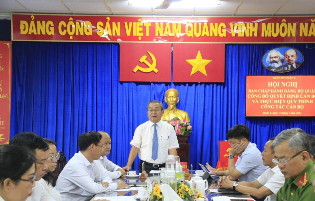 Chiều ngày 11/9, Quận ủy Quận 8 tổ chức hội nghị Ban chấp hành Đảng bộ quận công bố quyết định cán bộ và thực hiện quy trình công tác cán bộ.