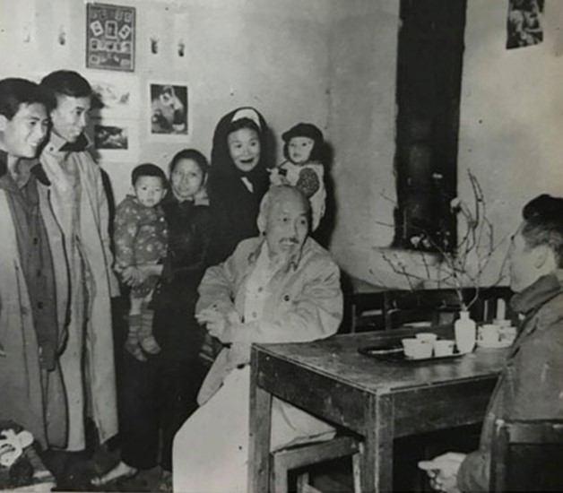 Chủ tịch Hồ Chí Minh thăm và chúc Tết gia đình cụ Nguyễn Thị Khánh (phố Lò Đúc, quận Hai Bà Trưng, Hà Nội), ngày 30/1/1957. (Ảnh tư liệu).