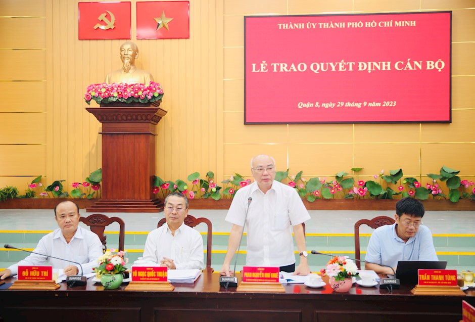 Chiều 29/9, Thành ủy TPHCM tổ chức lễ công bố quyết định cán bộ. Đến dự có Ủy viên Ban Thường vụ Thành ủy, Trưởng ban Tuyên giáo Thành ủy TPHCM Phan Nguyễn Như Khuê; Thành ủy viên, Bí thư Quận ủy Quận 8 Võ Ngọc Quốc Thuận.