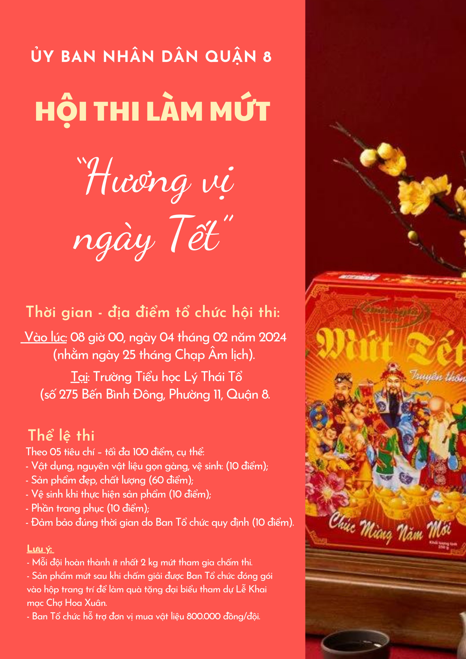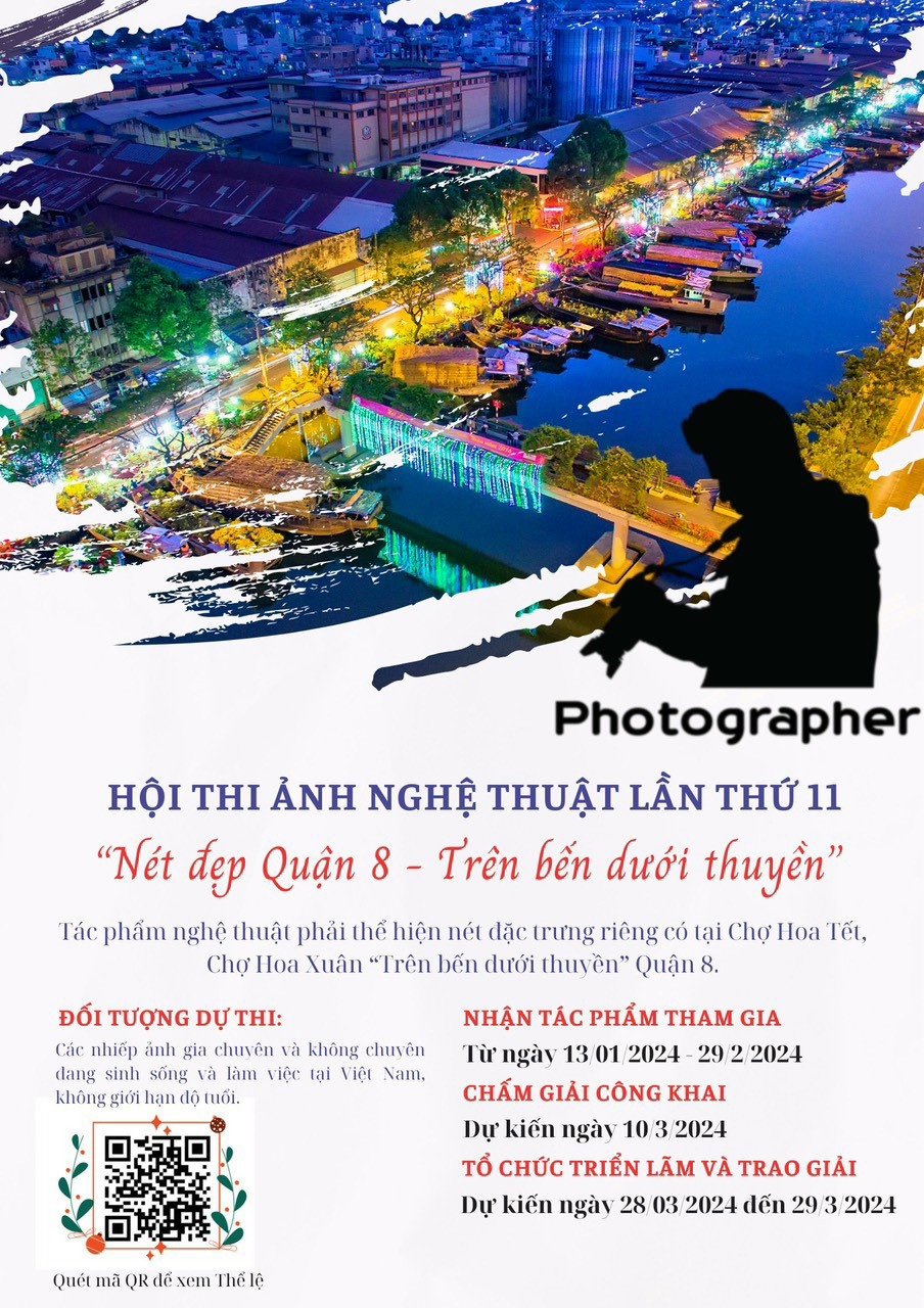 2.5. Khắc họa và lưu giữ những khung ảnh nhộn nhịp trong chuỗi hoạt động chợ hoa, Quận 8 tiếp tục tổ chức Hội thi ảnh nghệ thuật lần 11 - năm 2024 với chủ đề “Nét đẹp Quận 8 - Trên bến dưới thuyền", đây là sân chơi lành mạnh, bổ ích cho những người có sở thích, đam mê nhiếp ảnh, các nhiếp ảnh gia chuyên và không chuyên đang sinh sống và làm việc trên địa bàn Thành phố Hồ Chí Minh, các tỉnh, thành trong cả nước.