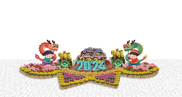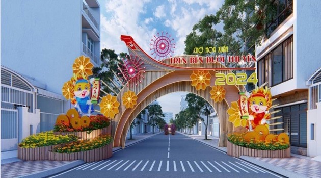 2.1. Cổng chào Chợ Hoa Xuân Tết Giáp Thìn năm 2024 được thiết kế với nhiều sắc màu rực rỡ, cùng với các cụm tiểu cảnh trang trí và mô hình biểu tượng của năm, hướng tới sự thành công tốt đẹp cho một năm mới, năm Giáp Thìn - 2024.