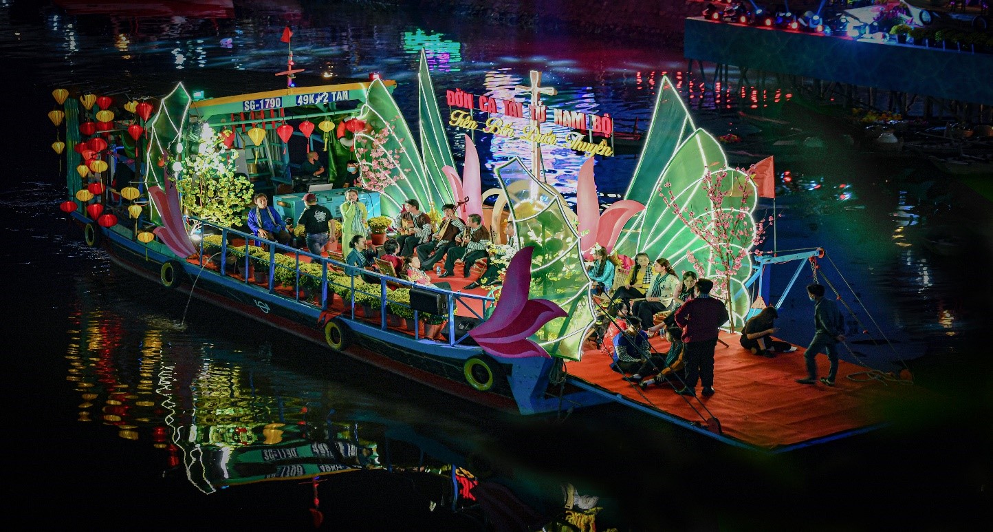 2.3. Chương trình biểu diễn Đờn ca tài tử trên ghe bầu dọc theo tuyến kênh Tàu Hủ, biểu diễn từ từ đêm 04 tháng 02 năm 2024 (nhằm ngày 25 tháng Chạp âm lịch) đến đêm 08 tháng 02 năm 2024 (nhằm ngày 29 tháng Chạp âm lịch); truyền hình trực tiếp trên Kênh truyền hình Thành phố Hồ Chí Minh (HTV) đêm 06 tháng 02 năm 2024 (nhằm ngày 27 tháng Chạp âm lịch) tại sân khấu tiểu cảnh “Trên bến dưới thuyền” trên Kênh Tàu Hủ, Phường 13, Quận 8.