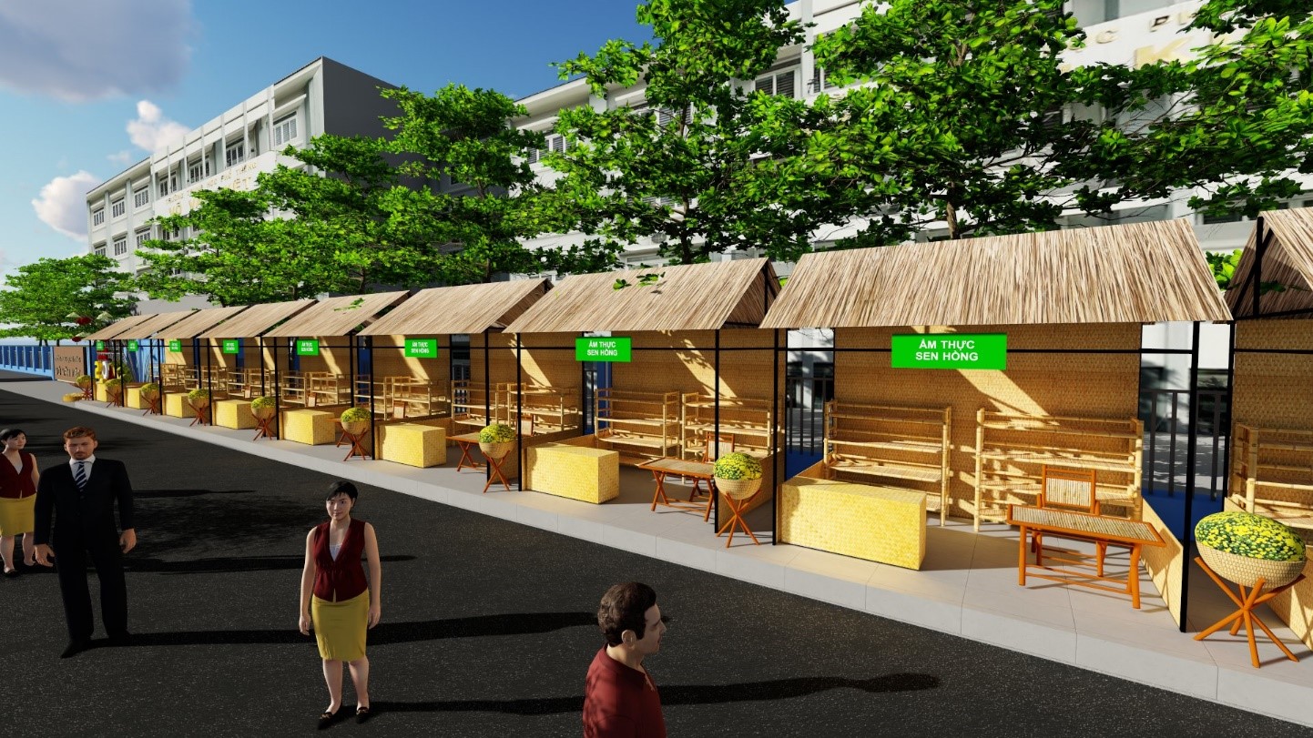 2.8. Tổ chức các gian hàng ẩm thực vùng miền với các món ăn truyền thống của dân tộc Việt Nam dọc trước trường Trung học phổ thông Võ Văn Kiệt, tuyến đường Bến Bình Đông Phường 13.
