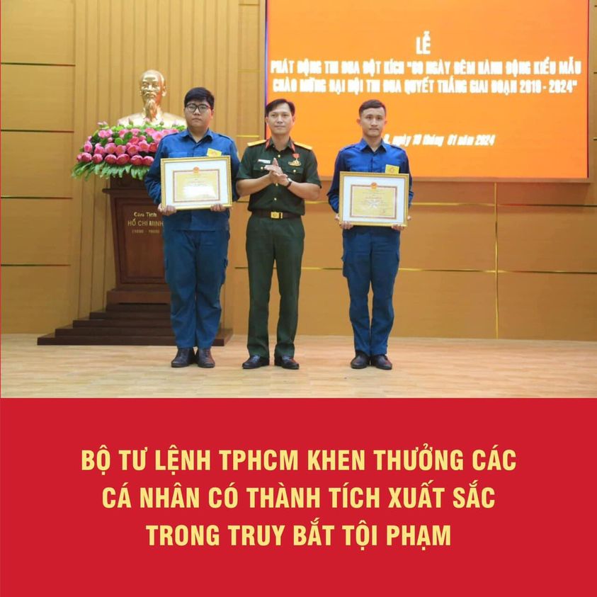 BỘ TƯ LỆNH TPHCM KHEN THƯỞNG CÁC CÁ NHÂN CÓ THÀNH TÍCH XUẤT SẮC TRONG TRUY BẮT TỘI PHẠM