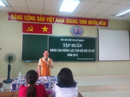 Lớp tập huấn gồm 3 buổi học với các chuyên đề: Công tác tổ chức Hội LHPN, vai trò, nhiệm vụ của Chủ tịch Hội, Chi Hội trưởng, kỹ năng trình bày thể thức văn bản Hội LHPN; Hội Phụ nữ cơ sở với Cuộc vận động “Xây dựng gia đình 5 không, 3 sạch” góp phần xây dựng đô thị văn minh; kỹ năng nắm bắt Dư luận xã hội. Báo cáo viên lớp tập huấn do Hội LHPN Thành phố, Hội LHPN Quận 8 trình bày.