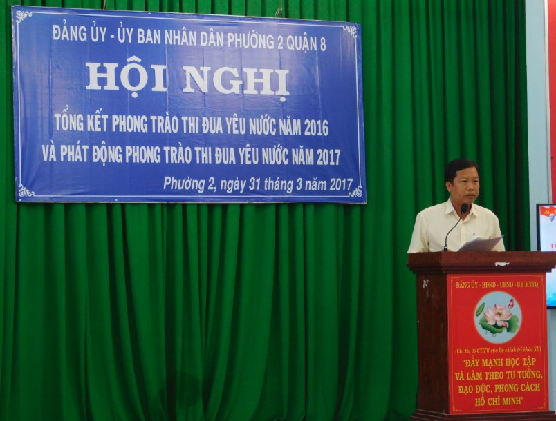 Ngày 31/03/2017, Tại hội trường UBND Phường 2 - Quận 8, Đảng ủy - UBND Phường 2 đã long trọng tổ chức hội nghị tổng kết phong trào thi đua yêu nước năm 2016 và phát động phong trào thi đua yêu nước năm 2017.