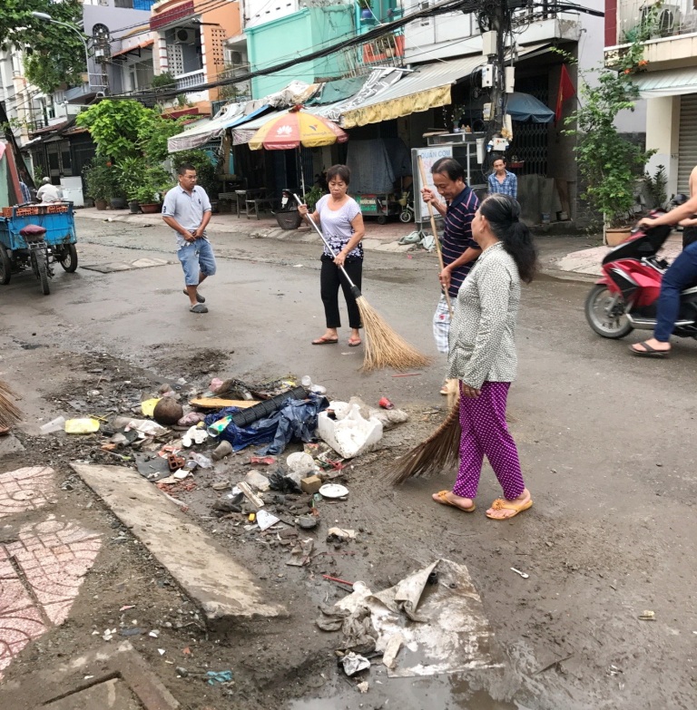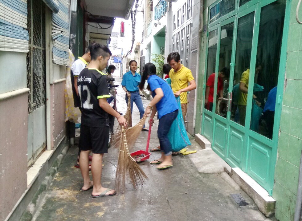 Các ban ngành đoàn thể khu phố 2 Phường 1 tổ chức ra quân