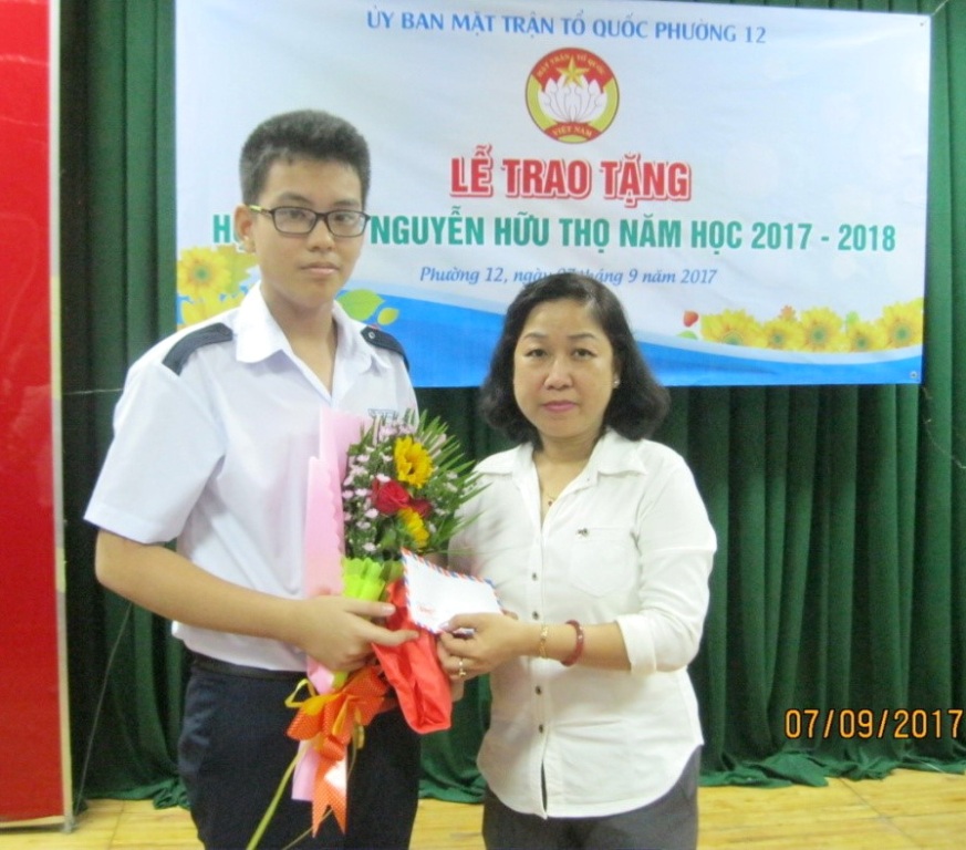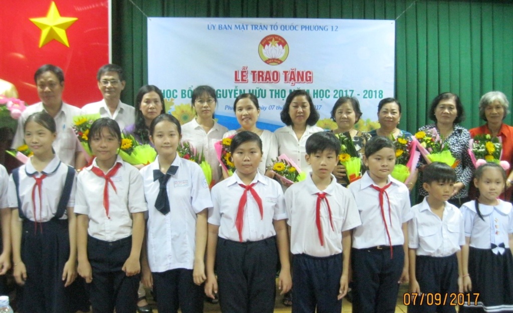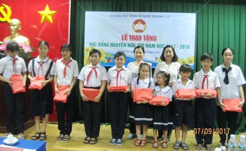 Nhằm giúp các em học sinh, sinh viên có hoàn cảnh khó khăn trong cuộc sống có điều kiện tiếp tục đến trường, tối ngày 07 tháng 9 năm 2017, Ủy ban Mặt trận Tổ quốc Việt Nam phường 12 đã tổ chức lễ trao học bổng Nguyễn Hữu Thọ năm học 2017 – 2018 cho học sinh, sinh viên nghèo hiếu học trên địa bàn phường.