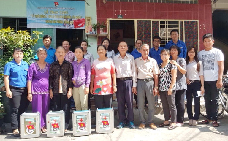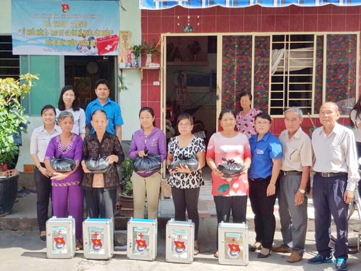 Với mục đích hỗ trợ nâng cao sức khỏe người dân tại cộng đồng dân cư trong các trường hợp bị chấn thương hoặc cần hỗ trợ thông tin y tế khẩn cấp, sáng ngày 13/9/2017 Ban Chấp hành Đoàn Thanh niên Phường 10 Quận 8 tổ chức buổi lễ trao tặng tủ thuốc nhân ái, dụng cụ y tế trao tay 05 gia đình hộ nghèo, cận nghèo trên địa bàn Phường 10 nhằm thực hiện và hoàn thành công trình thanh niên năm 2017 góp phần cùng với Ban Giảm nghèo bền vững Phường 10 làm tốt công tác chăm sóc sức khỏe nhân dân.