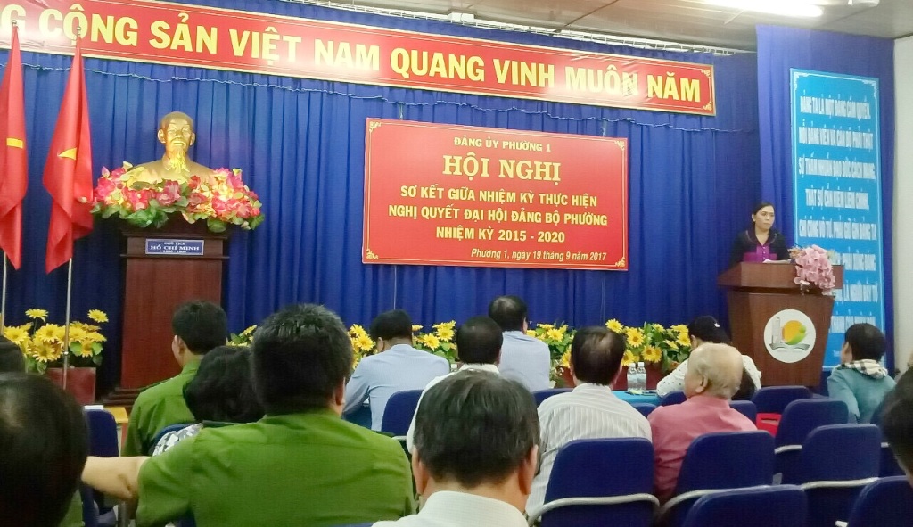 Thực hiện chỉ đạo của Ban Thường vụ Quận uỷ về việc tổ chức Hội nghị sơ kết giữa nhiệm kỳ thực hiện Nghị quyết Đại hội Đảng bộ Phường 1 nhiệm kỳ XII (2015-2020); Đảng uỷ Phường 1 tổ chức Hội nghị Sơ kết giữa nhiệm kỳ thực hiện Nghị quyết Đại hội Đảng bộ Phường 1 nhiệm kỳ XII (2015-2020). Tại Hội trường Uỷ ban nhân dân Phường 1 vào lúc 8 giờ sáng ngày 19 tháng 9 năm 2017; đến tham dự Hội nghị về phía lãnh đạo Quận 8 có đồng chí Nguyễn Thanh Xuân – Phó bí thư Quận uỷ Quận 8; về phía lãnnh đạo phường có đồng chí Lê Văn Tám – Bí thư Đảng uỷ - Chủ tịch HĐND phường; đồng chí Vũ Yến Oanh – Phó bí thư Đảng uỷ - Chủ tịch UBND phường, đồng chí Nguyễn Văn Đại – Phó bí thư Thường trực Đảng uỷ phường; đồng chí Hoàng Thị Hải Vi - Đảng uỷ viên – Chủ tịch Uỷ ban MTTQ Việt Nam Phường 1, cùng các đồng chí đảng viên, các đồng chí đại diện các ban ngành đoàn thể phường, cấp uỷ 11 chi bộ trực thuộc cùng đến tham dự cuộc hội nghị.