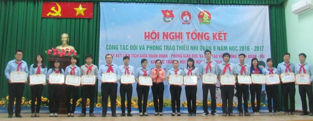 Dịp này, Ban Tổ chức chương trình đã trao bằng khen của Trung ương Đoàn cho 3 tập thể và 1 cá nhân; bằng khen của Thành Đoàn Thành phố Hồ Chí Minh cho 1 tập thể và 3 cá nhân; giấy khen của Ủy ban ban nhân quận cho 14 tập thể 14 cá nhân; giấy khen của Quận Đoàn cho 9 tập thể 18 cá nhân có thành tích xuất sắc trong công tác Đội và phong trào thiếu nhi Quận 8 năm học 2016 - 2017.