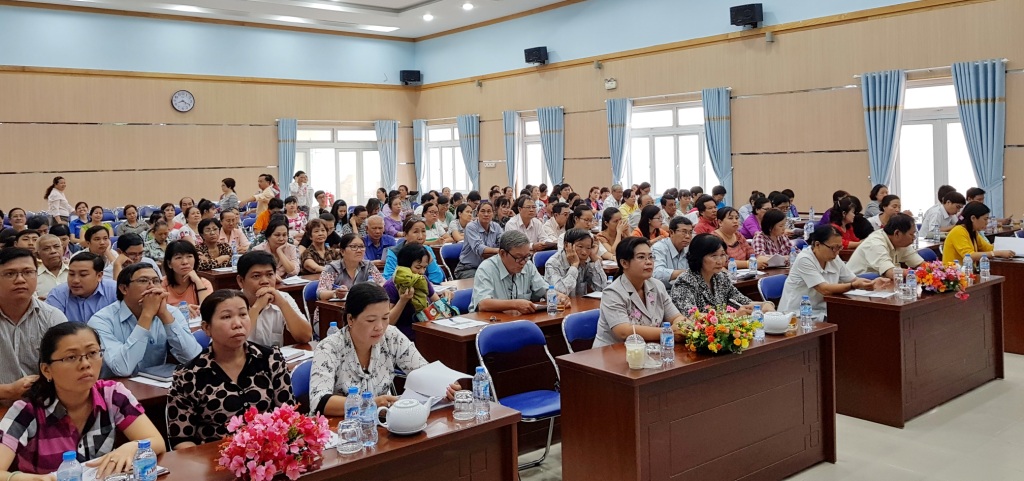 Toàn cảnh Hội nghị tập huấn chương trình “Phân loại chất thải rắn sinh hoạt tại nguồn” trên địa bàn quận 8 giai đoạn (2017 - 2020).