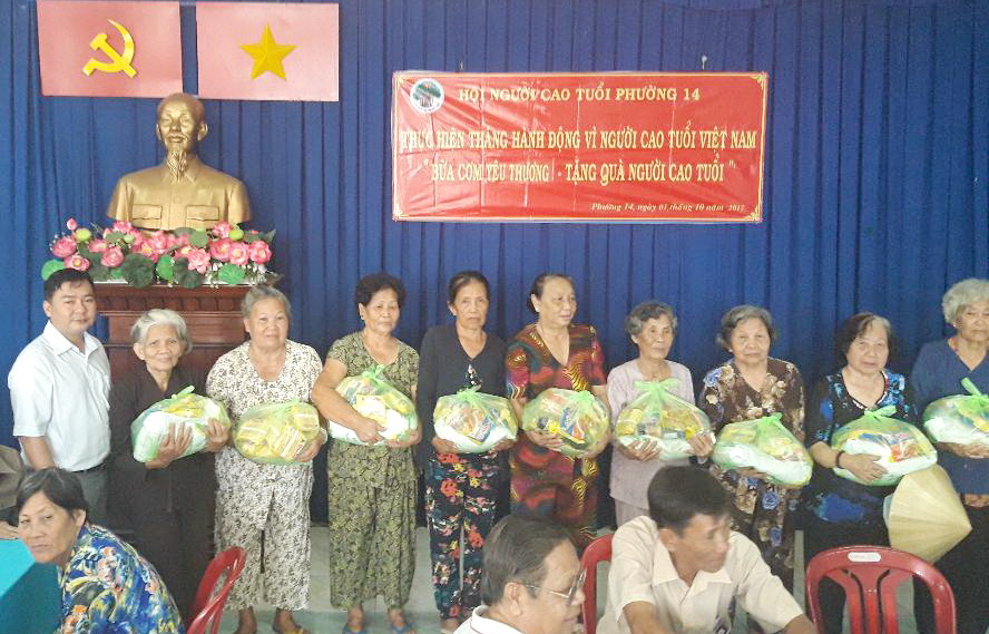 Sáng 1/10, tại Nhà văn hóa Phường 14, kỷ niệm 26 năm ngày Quốc tế người cao tuổi và thực hiện "Tháng hành động vì người cao tuổi Việt Nam" năm, Ủy ban nhân dân Phường 14 phối hợp cùng UB.MTTQ, Hội Người cao tuổi đã tổ chức kiểm tra đường huyết, tổ chức bữa cơm yêu thương, tặng quà cho 100 cụ cao tuổi với tổng trị giá 18.000.000đồng.