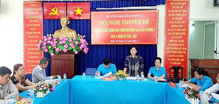 Sáng ngày 04/10/2017 Hội đồng nhân dân Phường 8 tổ chức Hội nghị chuyên đề: “Nâng cao chất lượng hoạt động Hội đồng nhân dân Phường khóa X, nhiệm kỳ 2016 - 2021” tại Hội trường UBND Phường 8.