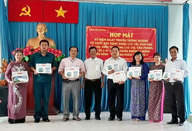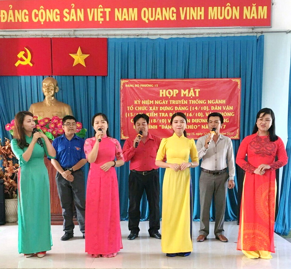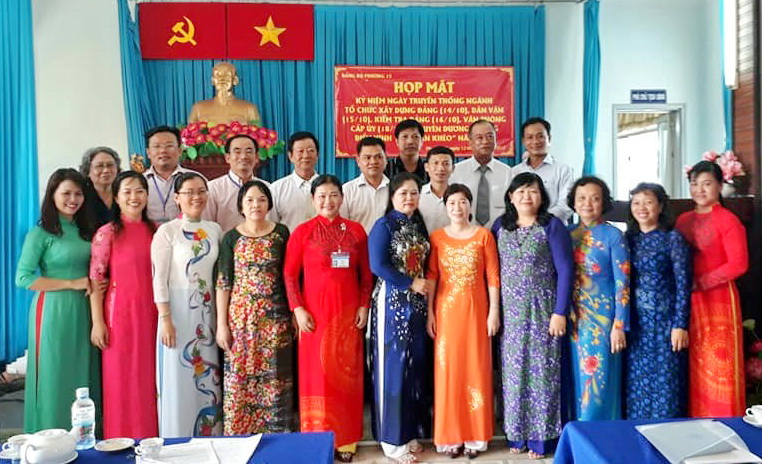 Trải qua 87 năm xây dựng và phát triển, cùng với các mặt công tác khác, công tác Tổ chức, Dân vận, Kiểm tra và Văn phòng cấp ủy đã gắn bó chặt chẽ với sự ra đời và hoạt động của Đảng, là một bộ phận không thể thiếu để xây dựng Đảng vững mạnh bảo đảm vai trò tiên phong, đảm đương sứ mệnh lãnh đạo sự nghiệp cách mạng đi đến thắng lợi. Nhằm ôn lại truyền thống lịch sử quý báu, ngày 12/10/2017 Đảng ủy phường 15 tổ chức họp mặt kỷ niệm các ngành xây dựng Đảng và tuyên dương các gương điển hình trong phong trào thi đua “Dân vận khéo” năm 2017.