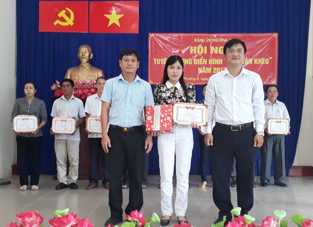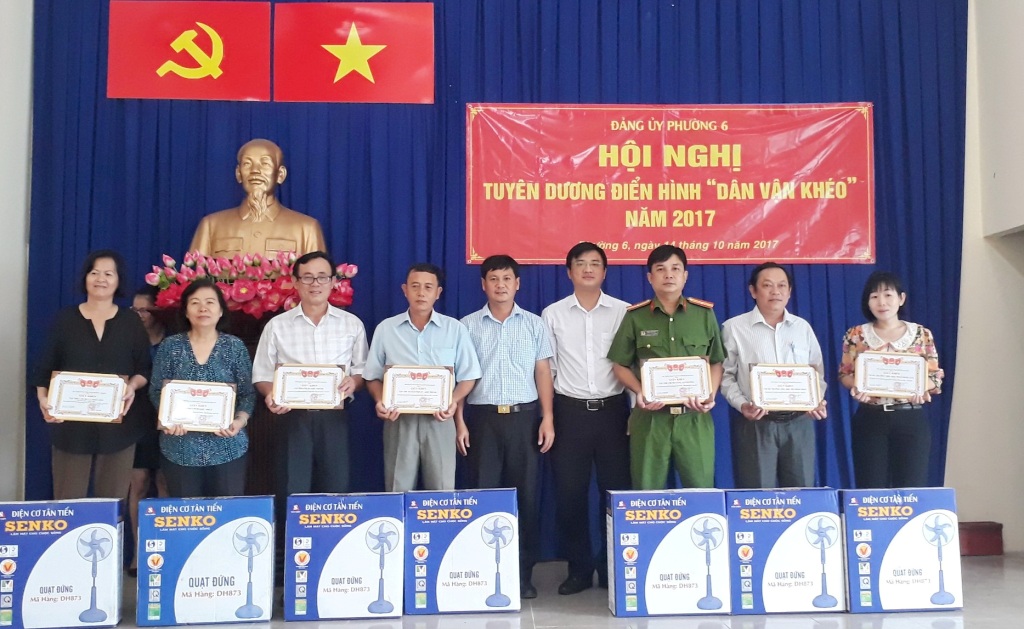 Sáng 14/10, Đảng ủy Phường 6 tổ chức Hội nghị sơ kết giữa nhiệm kỳ thực hiện Nghị quyết Đại hội Đảng bộ Phường 6 lần thứ XII nhiệm kỳ 2015 – 2020 và tuyên dương điển hình “Dân vận khéo” năm 2017. Đến tham dự có các đồng chí: Nguyễn Quang Huy, Quận ủy viên, Bí thư Đảng ủy; Mai Thị Thảo Vi, Phó Bí thư thường trực Đảng ủy; Nguyễn Xuân Tuấn, Phó Bí thư Đảng ủy, Chủ tịch UBND phường và các đồng chí đảng ủy viên, chi ủy các chi bộ, Mặt trận Tổ quốc và các đoàn thể thể phường,….