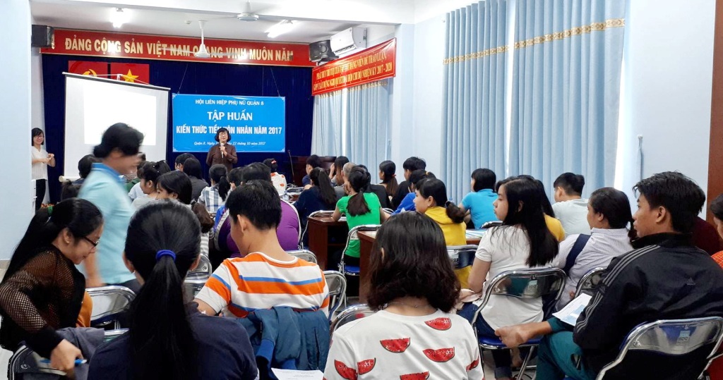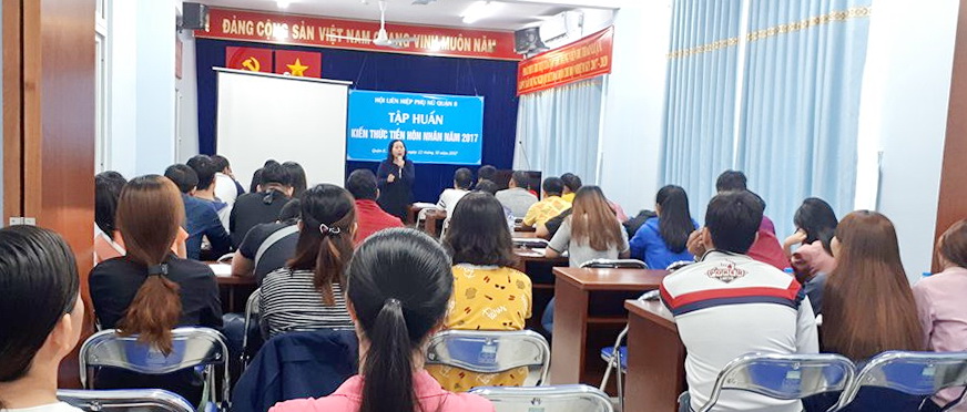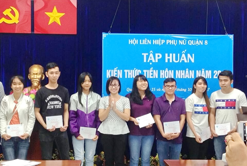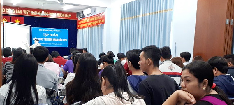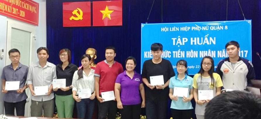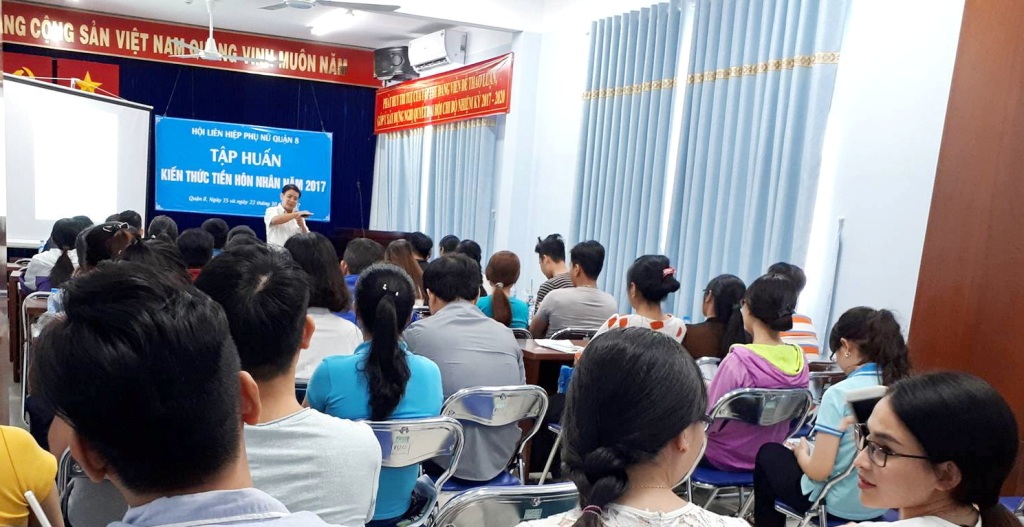 Vừa qua ngày 15/10 và 22/10 tại phòng họp số 02 Trụ sở mặt trận tổ quốc Việt Nam và các Đoàn thể quận 8, Hội Liên hiệp Phụ nữ Quận 8 tổ chức lớp tập huấn về Kiến thức tiền hôn nhân năm 2017.