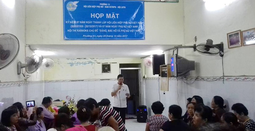 Trong buổi họp mặt, bà Đỗ Hồng Vân – Đảng ủy viên, Chủ tịch Hội Liên hiệp Phụ nữ Phường 13 đã ôn lại truyền thống 87 năm ngày thành lập Hội Liên hiệp Phụ nữ Việt Nam (20/10/1930 – 20/10/2017), 07 năm ngày Phụ nữ Việt Nam (20/10/2010 – 20/10/2017). Cũng nhân buổi họp mặt này, Hội Liên hiệp Phụ nữ Phường 13 đã phối hợp với Ban Vì sự tiến bộ phụ nữ Phường 13 tổ chức hội thi hát Karaoke với chủ đề “Đảng, Bác Hồ và phụ nữ Việt Nam”, hội thi đã diễn ra trong không khí vui tươi, sôi nổi và đầy hào hứng với 8 tiết mục dự thi đến từ 4 chi hội phụ nữ khu phố, kết quả giải nhất thuộc về chị Vương Ngọc Ngân – hội viên chi hội phụ nữ khu phố 4 với tiết mục dự thi Mừng tuổi mẹ, ban tổ chức cũng đã trao một giải nhì, một giải ba và ba giải khuyến khích cho các tiết mục dự thi đến từ các chi hội phụ nữ. Việc tổ chức thành công buổi họp mặt kỷ niệm 87 năm ngày thành lập Hội Liên hiệp Phụ nữ Việt Nam (20/10/1930 – 20/10/2017), 07 năm ngày Phụ nữ Việt Nam (20/10/2010 – 20/10/2017) và hội thi hát Karaoke với chủ đề “Đảng, Bác Hồ và phụ nữ Việt Nam” đã khẳng định được vai trò của Hội Liên hiệp Phụ nữ Phường 13 trong việc thực hiện tốt các nhiệm vụ chính trị, văn hóa – xã hội tại địa phương, góp phần củng cố, xây dựng và phát triển tổ chức Hội ngày càng vững mạnh.