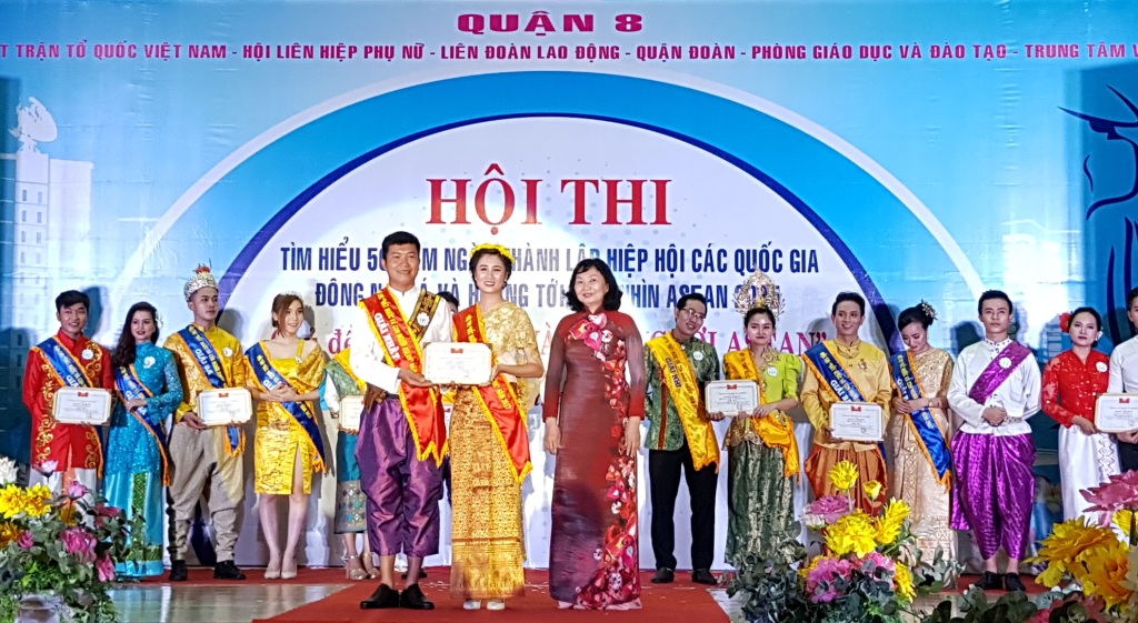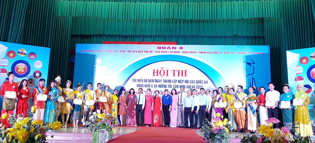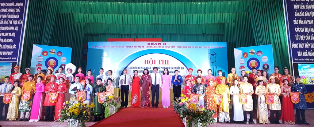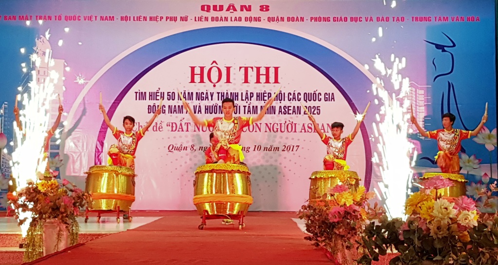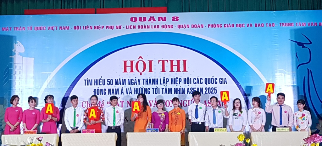 Hòa trong khí thế thi đua sôi nổi, thiết thực lập thành tích chào mừng kỷ niệm 61 năm ngày truyền thống Hội Liên hiệp Thanh niên Việt Nam, 87 năm ngày thành lập Hội Liên hiệp Phụ nữ Việt Nam và ngày truyền thống Mặt trận Tổ quốc Việt Nam, 35 năm ngày Nhà giáo Việt Nam và chào mừng Đại hội đại biểu Công đoàn Quận 8 nhiệm kỳ 2018 - 2023. Sáng ngày 28 tháng 10 năm 2017, tại hội trường Văn hóa Quận 8, Ủy ban MTTQ Việt Nam Quận 8 phối hợp Liên đoàn lao động, Hội Liên hiệp phụ nữ, Đoàn Thanh niên Cộng sản Hồ Chí Minh, Phòng Giáo dục và đào tạo, Trung tâm Văn hóa Quận 8 tổ chức Hội thi tìm hiểu 50 năm thành lập Hiệp hội các quốc gia Đông Nam Á và hướng tới tầm nhìn ASEAN 2025 Chủ đề “Đất nước và con người ASEAN”.