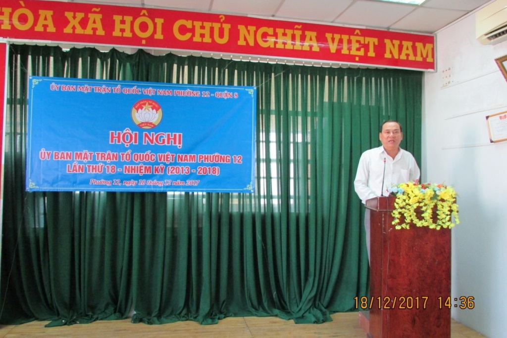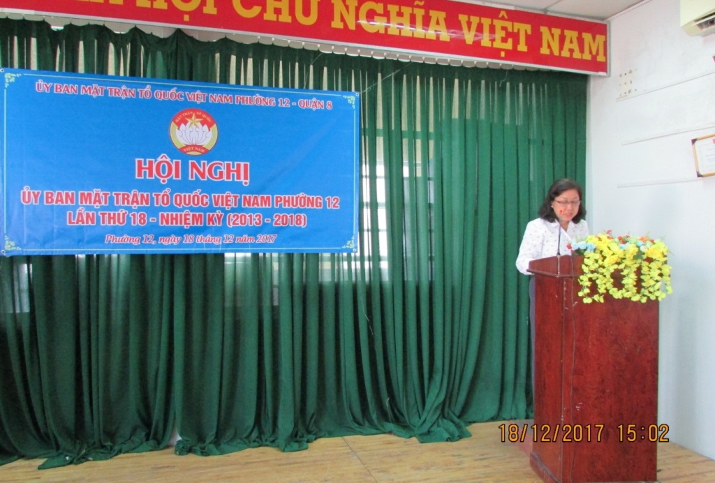 Được sự chấp thuận của Ban Thường trực Ủy ban Mặt trận Tổ quốc Việt Nam Quận 8, Thường trực Đảng ủy Phường 12. Vào lúc 14 giờ, ngày 18 tháng 12 năm 2017, Ban Thường trực Uỷ ban Mặt trận Tổ quốc Việt Nam Phường 12 tổ chức Hội nghị Ủy ban Mặt trận Tổ quốc Phường, lần thứ 18, nhiệm kỳ 2013 – 2018.