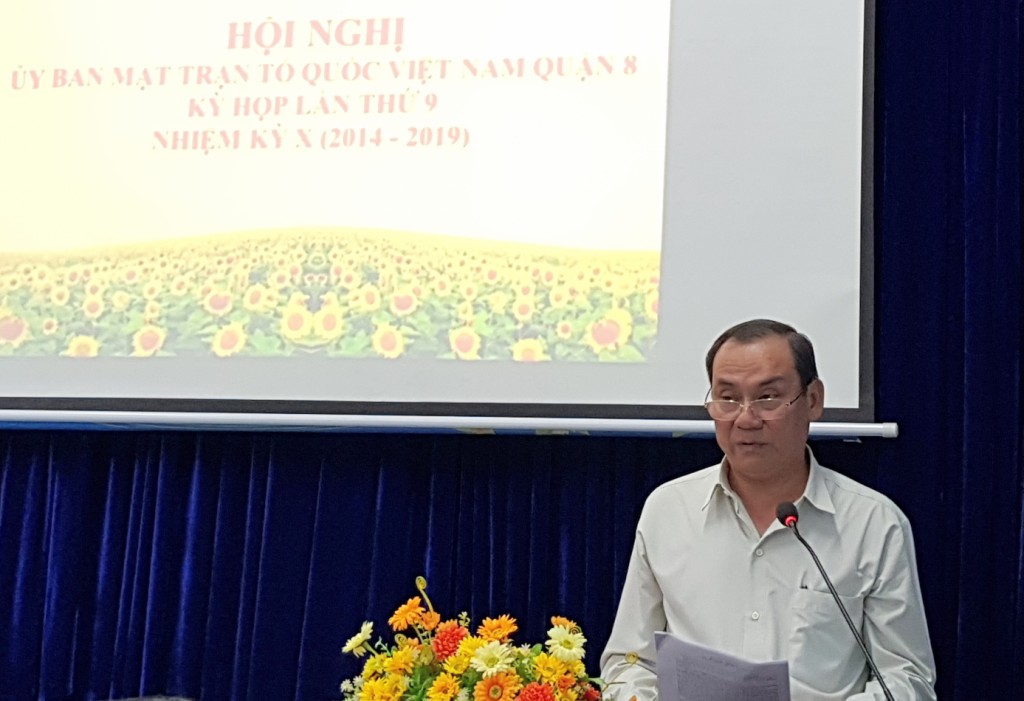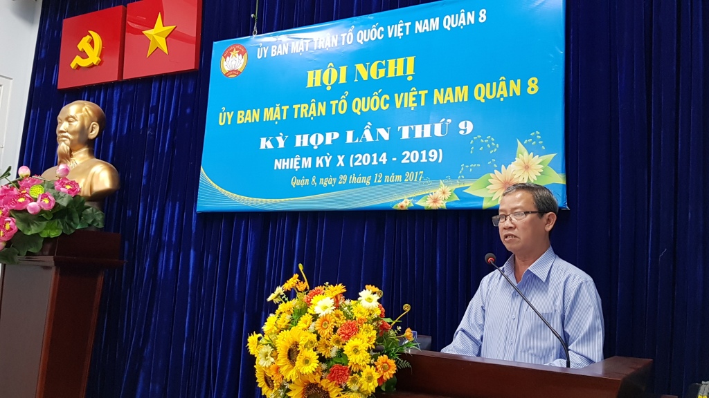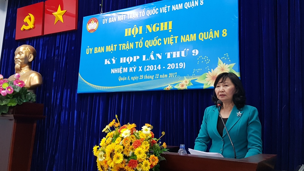 Chiều ngày 29 tháng 12 năm 2017, tại Phòng họp số 1 Ủy ban Mặt trận Tổ quốc, các đoàn thể Quận 8, Ban Thường trực Ủy ban Mặt trận Tổ quốc Việt Nam Quận 8 tổ chức Hội nghị Ủy ban Mặt trận Tổ quốc Việt Nam Quận 8 lần thứ 9, nhiệm kỳ X (2014 - 2019).