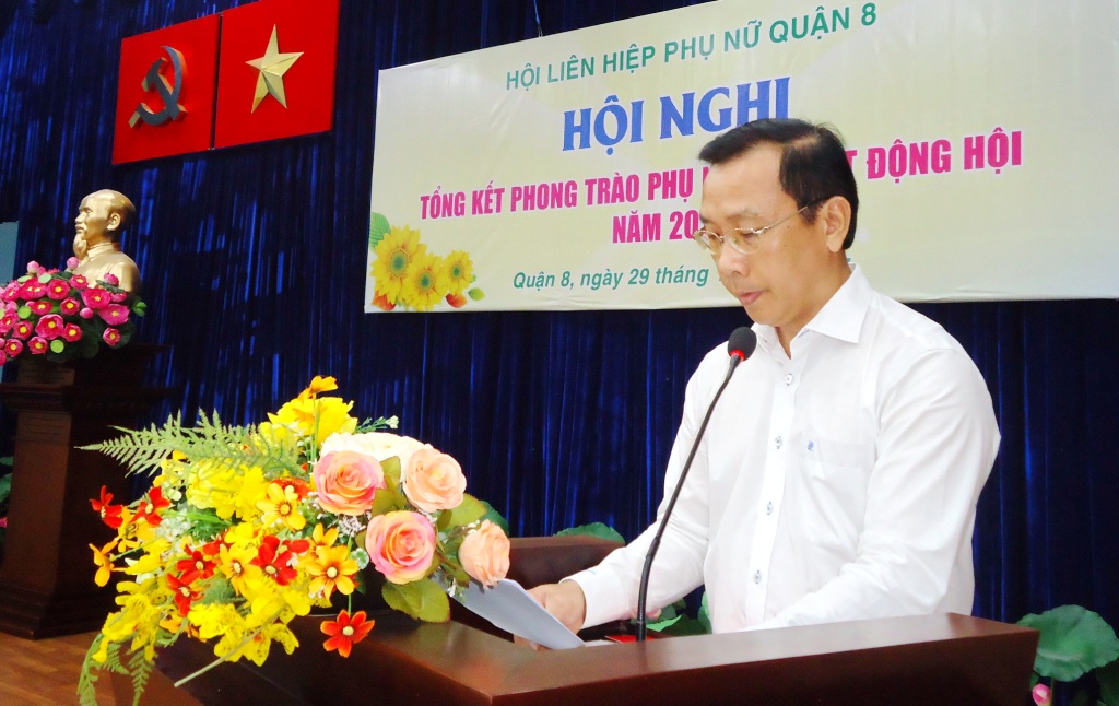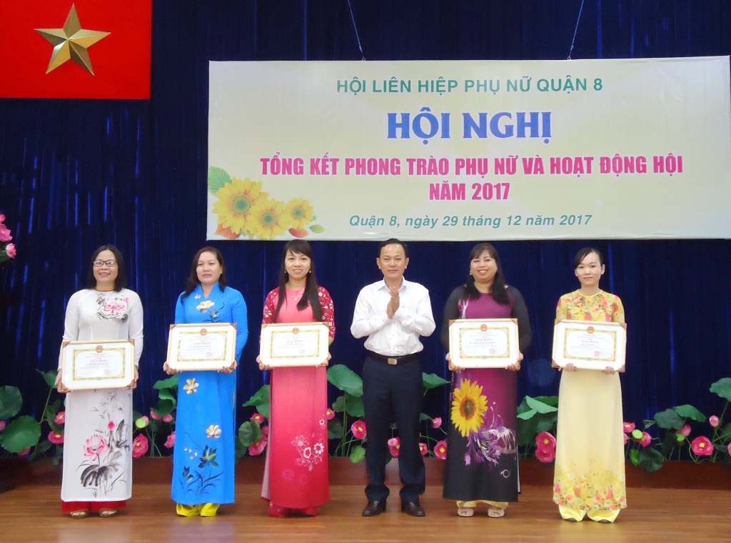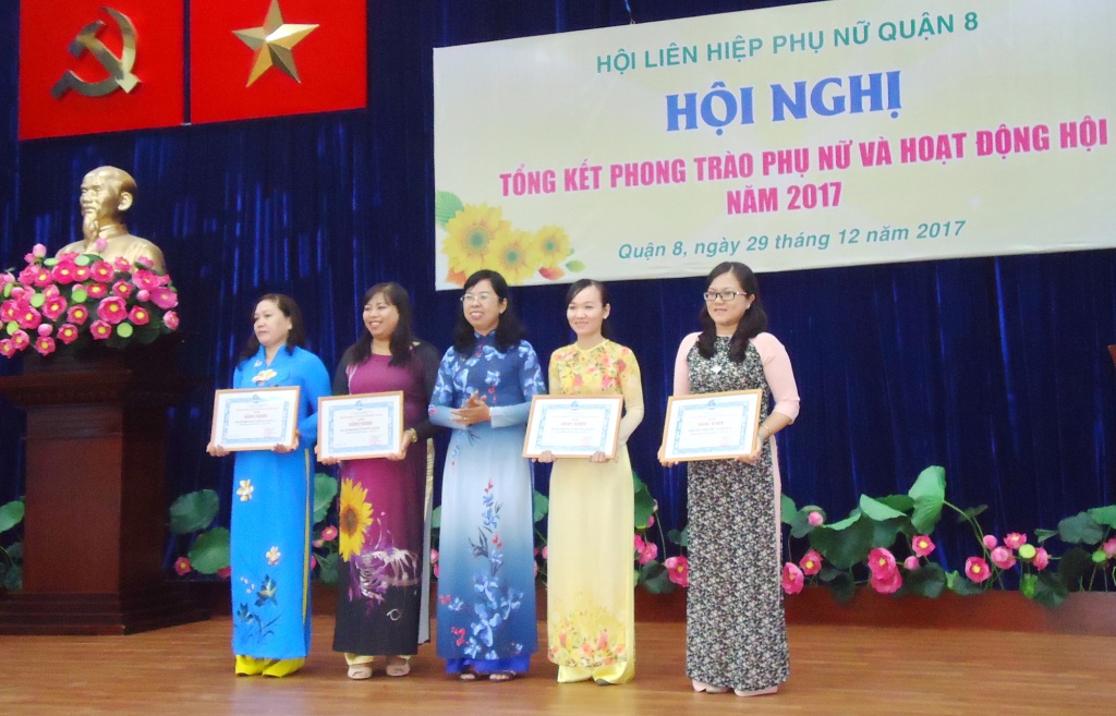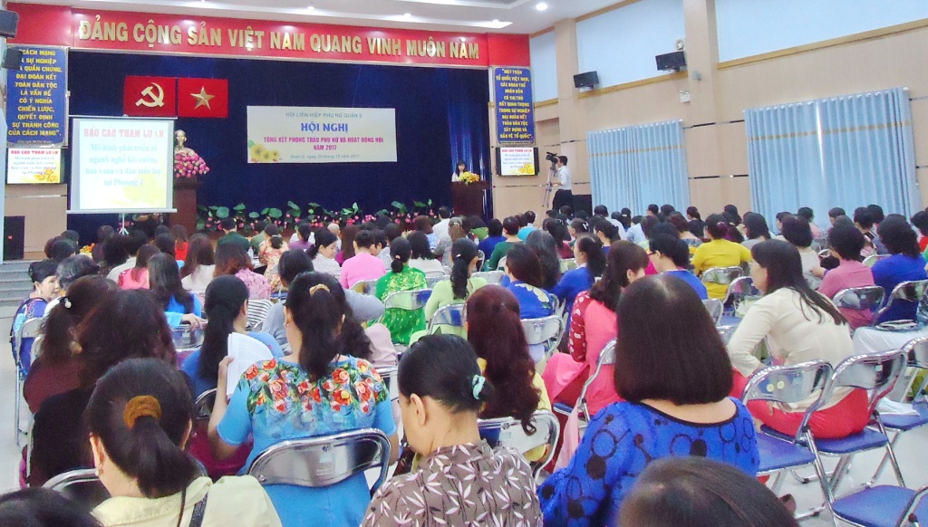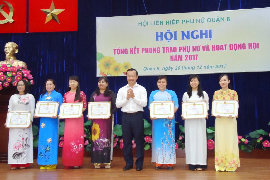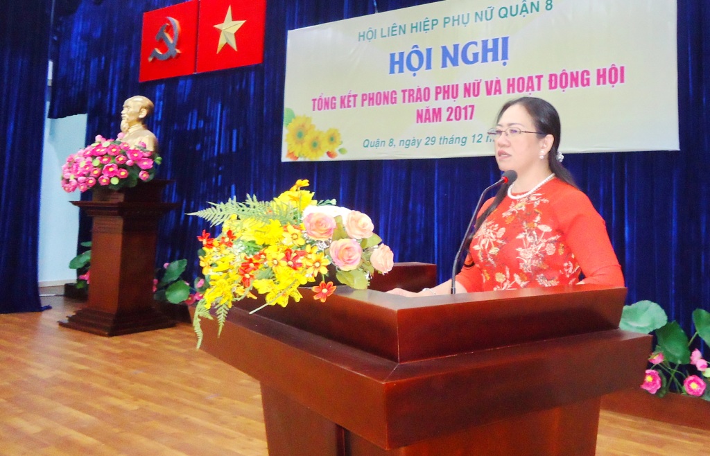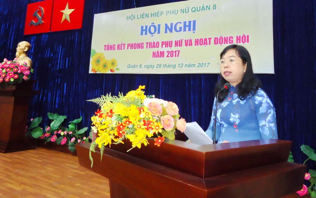 Sáng 29/12/2017, Hội Liên hiệp Phụ nữ Quận 8 tổ chức Hội nghị tổng kết phong trào phụ nữ và hoạt động Hội năm 2017 tại Hội trường Mặt trận Tổ quốc và các đoàn thể Quận. Đến tham dự có các đồng chí Đỗ Thị Chánh – Phó Chủ tịch Hội Liên hiệp Phụ nữ Thành phố; đ/c Ngô Thành Tuấn – Bí thư Quận ủy Quận; đ/c Hà Văn Lợi – Trưởng Ban Tổ chức Quận ủy; đ/c Huỳnh Kim Chi – UVTV, Chủ tịch Ủy ban Mặt trận Tổ quốc Quận; đ/c Nguyễn Thanh Sang – Phó Chủ tịch Ủy ban nhân dân Quận cùng các đ/c trong ban ngành đoàn thể quận, Thường trực Đảng ủy 16 Phường, các chị trong UVBCH Hội Liên hiệp Phụ nữ Quận và Thường trực Hội Phụ nữ cơ sở, cán bộ chi, tổ Hội.