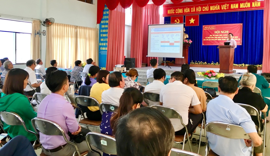Tại hội nghị, đồng chí Trương Công Hồ – Phó Trưởng Ban Tuyên giáo Quận ủy Quận 8 đã triển khai Kế hoạch học tập, quán triệt, tuyên truyền và triển khai thực hiện Nghị quyết Hội nghị Trung ương 6 khóa XII. Các đại biểu tham dự hội nghị đã nghiên cứu các chuyên đề: Nghị quyết 18-NQ/TW về "Đổi mới, sắp xếp bộ máy của hệ thống chính trị"; Nghị quyết 19-NQ/TW về "Sắp xếp, tổ chức lại các đơn vị sự nghiệp công lập"; Nghị quyết 20-NQ/TW về "Công tác bảo vệ, chăm sóc và nâng cao sức khỏe nhân dân trong tình hình mới"; Nghị quyết 21-NQ/TW về "Công tác dân số trong tình hình mới". Các đồng chí được truyền đạt những nội dung cơ bản của những Nghị quyết trên và những vấn đề cần quan tâm trong quá trình triển khai thực hiện Nghị quyết ở các cấp.