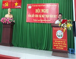 Chiều ngày 04 tháng 01 năm 2017 tại Hội trường Ủy ban nhân dân phường 2, Ủy ban Mặt trận Tổ quốc Việt Nam Phường 2 tổ chức Hội nghị tổng kết công tác Mặt trận năm 2017. Đến dự có ông Đinh Chí Thành - Phó Chủ tịch Ủy ban Mặt trận Tổ quốc Việt Nam Quận 8; ông Nguyễn Văn Thanh - Phó Bí thư Thường trực Đảng ủy Phường 2; ông Hồ Thanh Bình - Phó Bí thư Đảng ủy, Chủ tịch UBND Phường 2; ông Lê Thanh Tú - Ủy viên Ban Thường vụ Đảng ủy, Chủ tịch Ủy ban Mặt trận Tổ quốc Việt Nam Phường 2 và các vị đại biểu đại diện cho các tổ chức thành viên, các vị là thành viên Ủy ban Mặt trận Tổ quốc phường, Ban Chỉ huy Công an, Quân sự, Cấp ủy các chi bộ, Ban điều hành, thành viên Ban công tác Mặt trận 7 khu phố, các vị chức sắc đại diện cho các dân tộc, tôn giáo trên địa bàn phường.