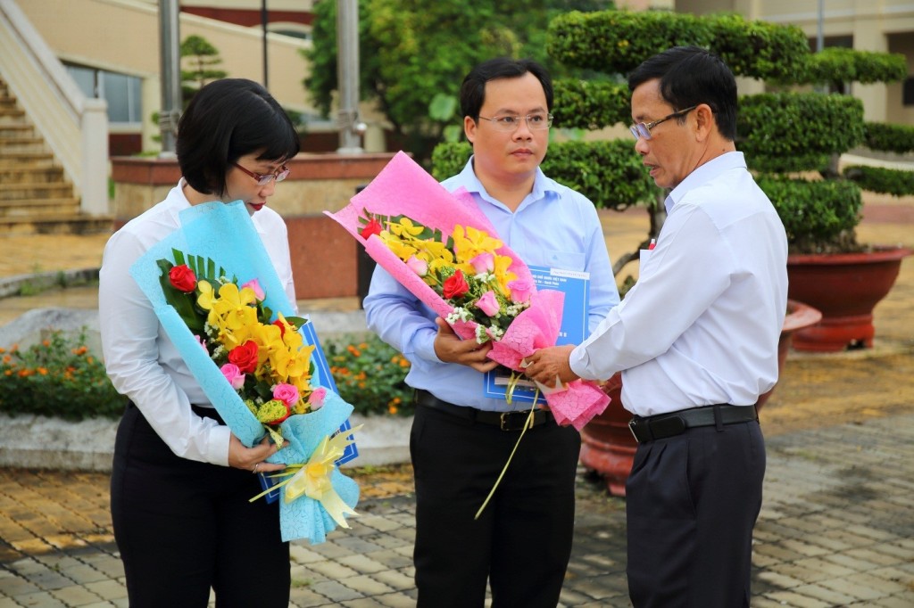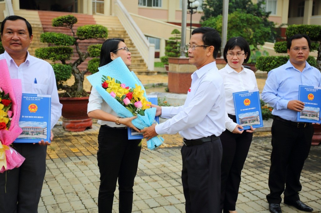 Đ/c Trần Quang Thảo, Phó Bí thư Quận ủy, Chủ tịch Ủy ban nhân dân Quận 8 tặng hoa và trao Quyết định cho các đồng chí được điều động, bổ nhiệm.