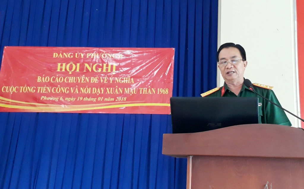 Đại tá Nguyễn Nhứt – báo cáo viên Ban Tuyên giáo Trung ương báo cáo chuyên đề cuộc Tổng tiến công và nổi dậy xuân Mậu Thân 1968.