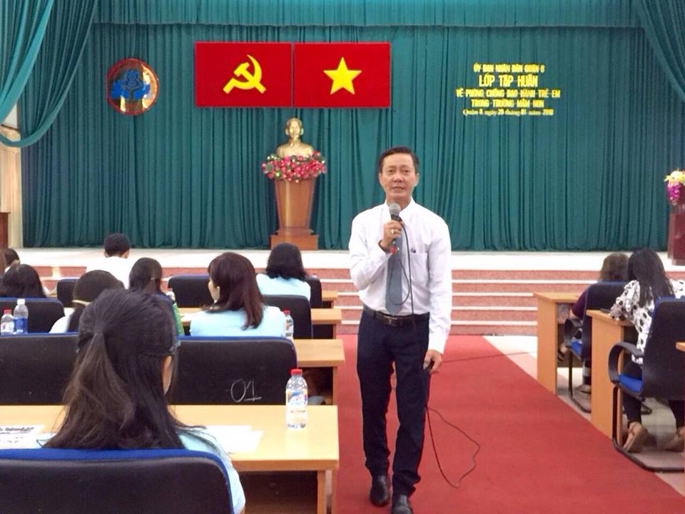Thực hiện kế hoạch liên tịch số 09/KHLT-PTP-PGDĐT-PLĐTBXH ngày 15 tháng 01 năm 2018 của Phòng Giáo dục và Đào tạo, Phòng Tư pháp, Phòng Lao động – Thương binh và Xã hội về việc tập huấn phòng chống bạo hành trẻ em trong trường mầm non. Sáng ngày 20 tháng 01 năm 2018, Phòng Giáo dục và Đào tạo phối hợp với Phòng Tư pháp, Phòng Lao động – Thương binh và Xã hội tổ chức lớp tập huấn “Phòng chống bạo hành trẻ em trong trường mầm non” tại Hội trường văn hóa - Ủy ban nhân dân Quận 8.