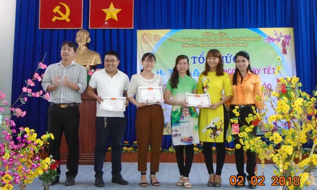 Sáng ngày 02 tháng 2 năm 2018, Ủy ban Nhân dân phối hợp Ủy ban Mặt trận Tổ quốc phường 7; Hội liên hiệp Phụ nữ phường, Đoàn Thanh niên, Công đoàn, Hội khuyến học tổ chức Hội thi “Mừng Đảng – mừng xuân” qua hội thi nấu ăn món ngon ngày tết, trang trí cành mai cành đào.